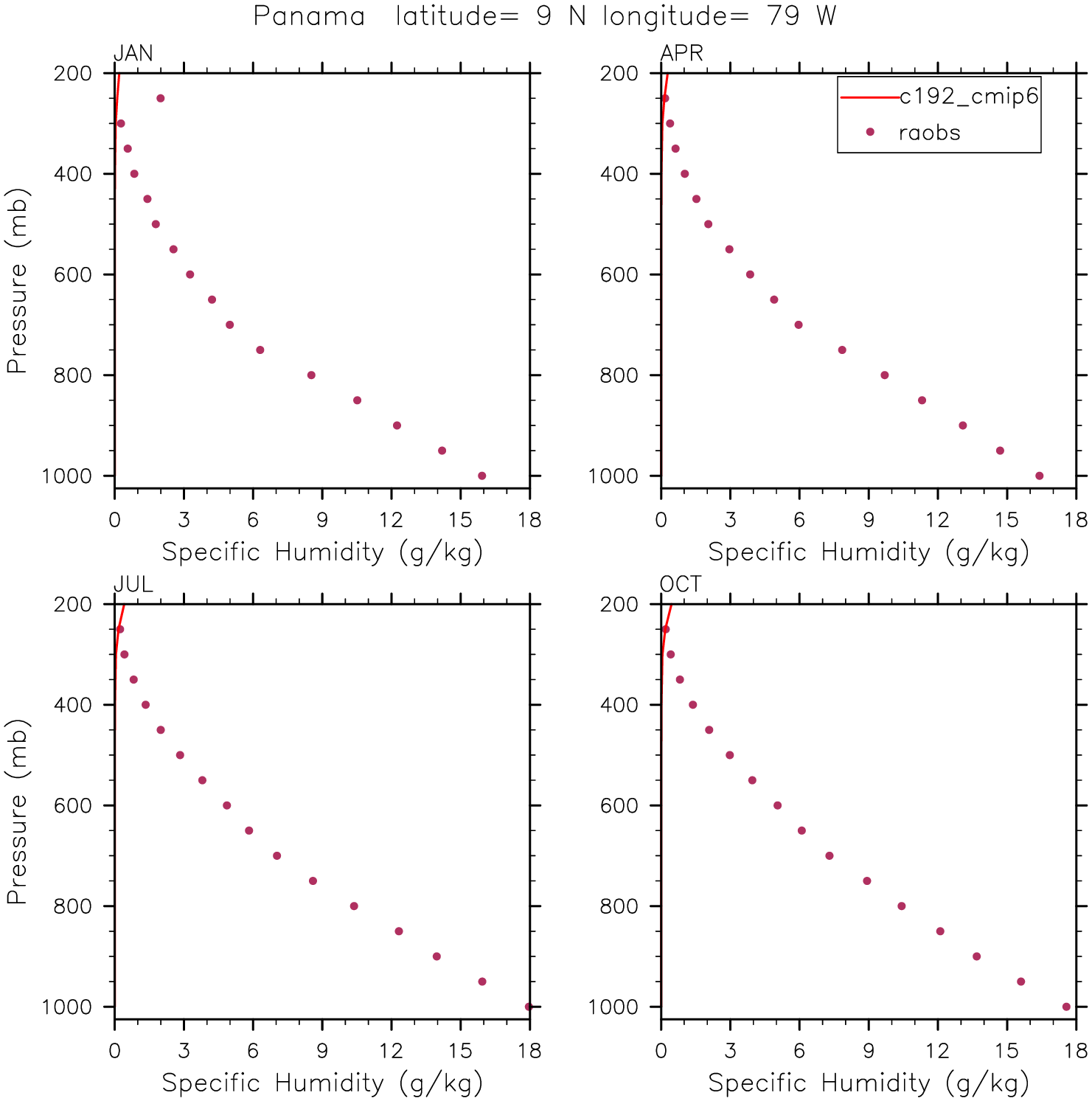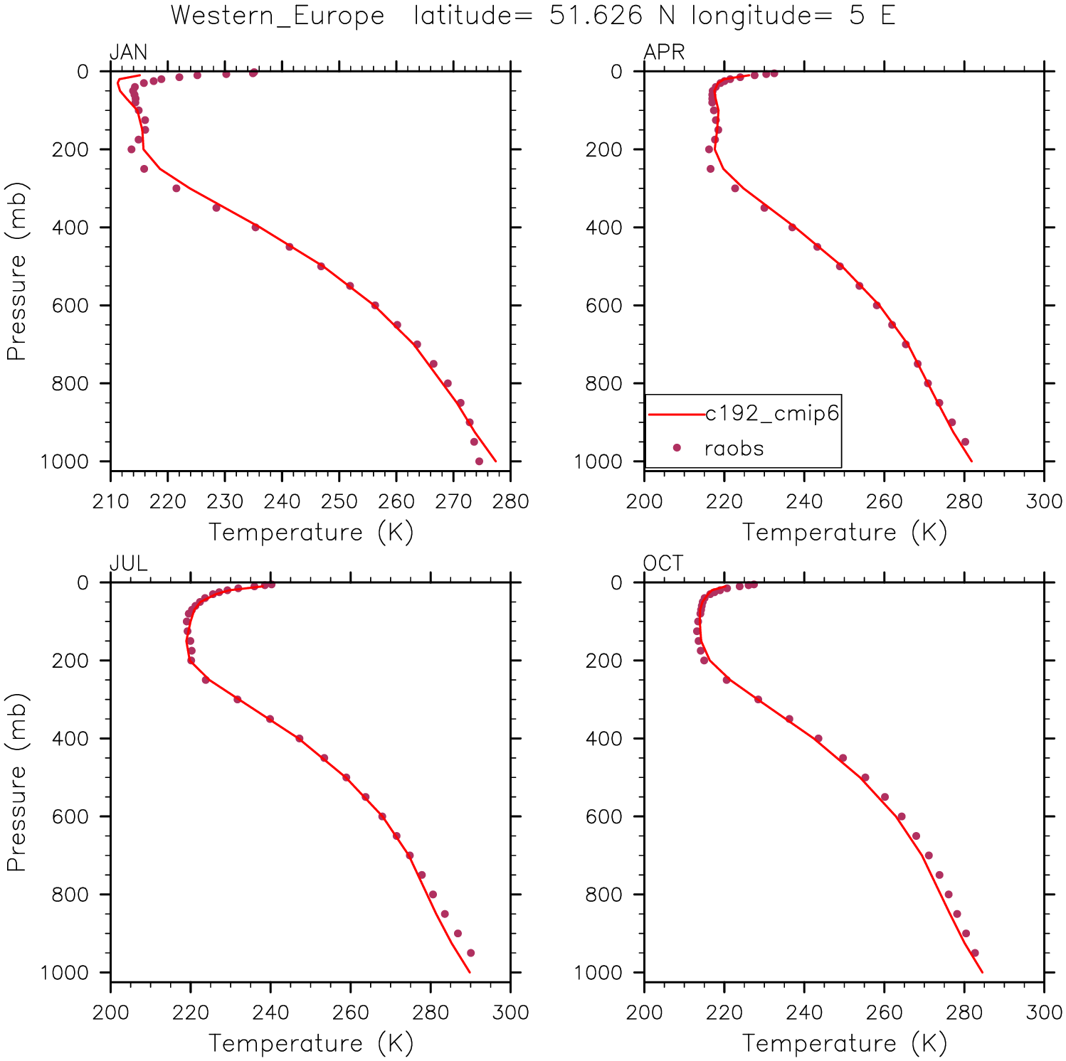 c192_cmip6 Set 12 - Vertical Profiles at 17 selected raobs stations
