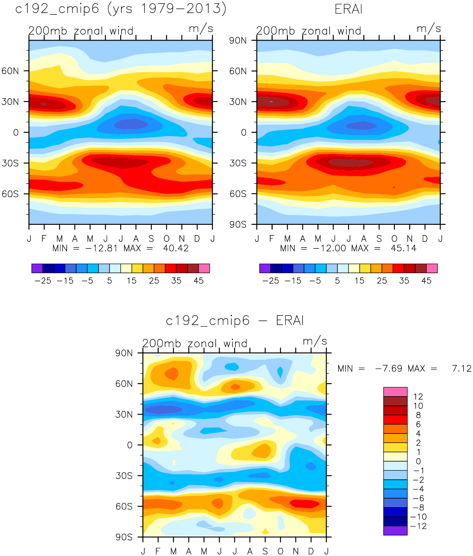 c192_cmip6 DIAG Set 8 - Annual cycle contour plots of zonal means