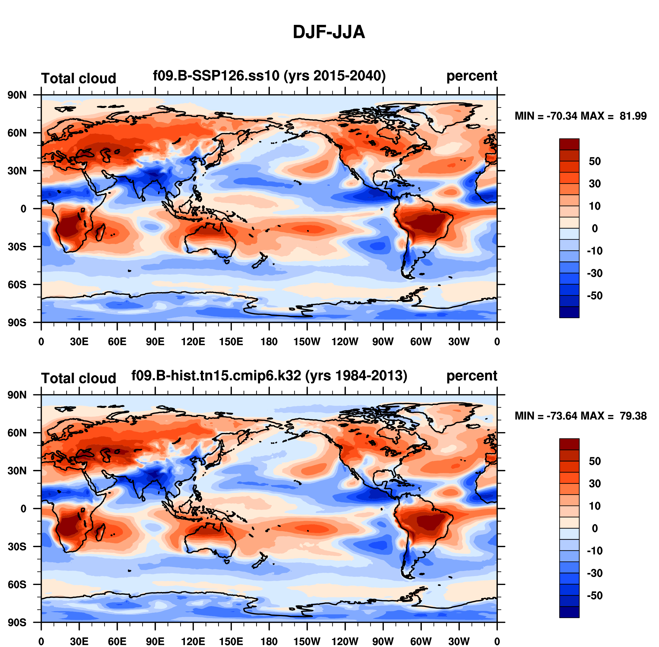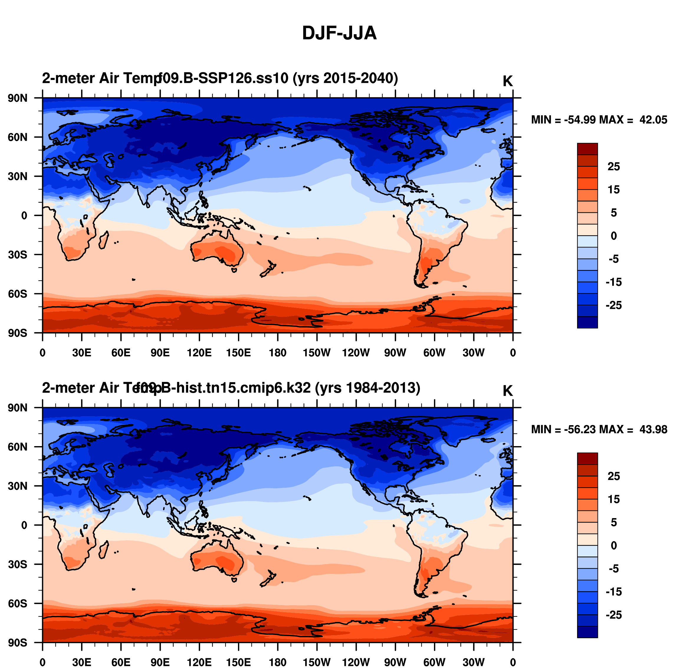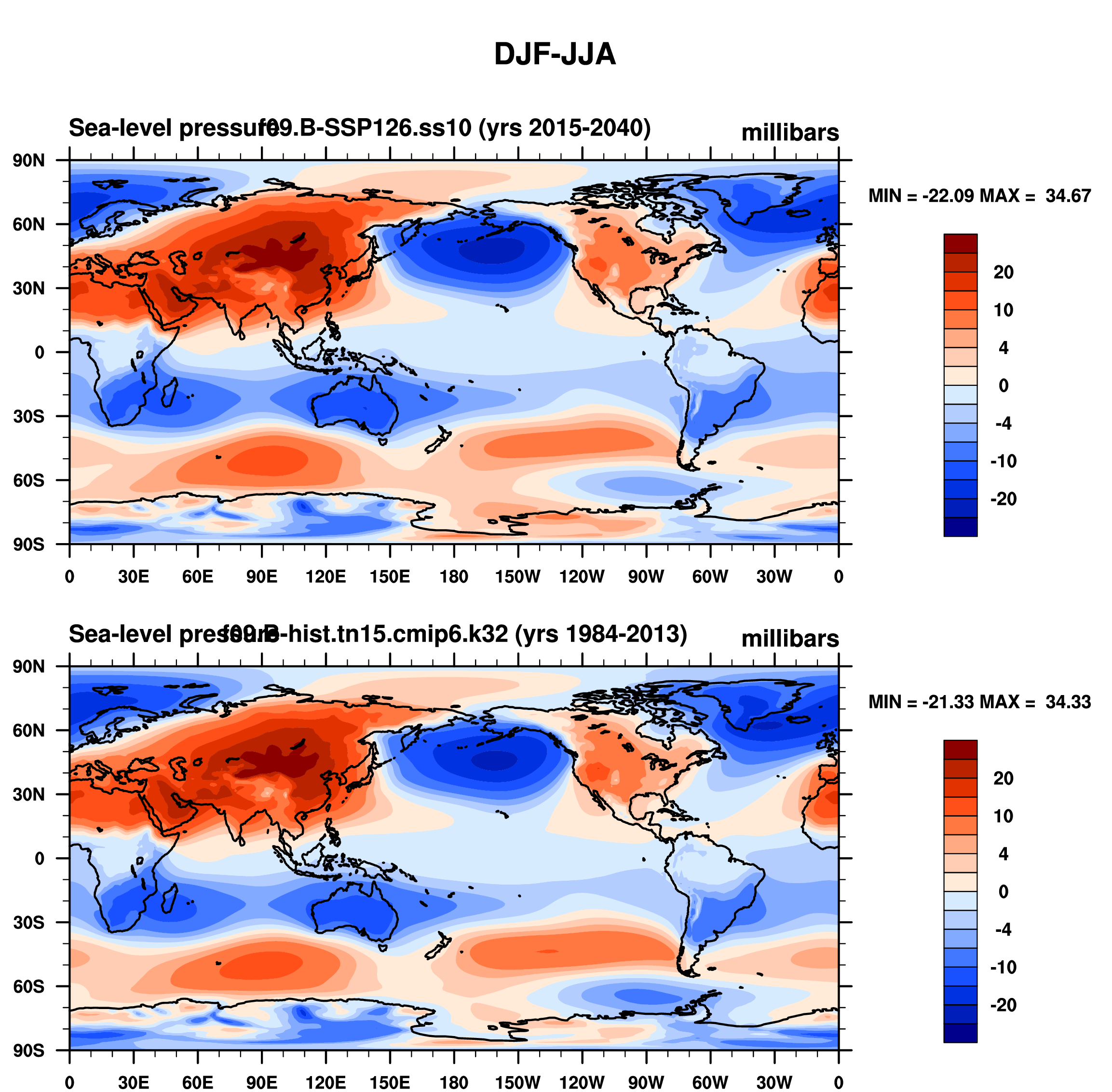 DIAG Set 9 - Horizontal contour plots of DJF-JJA differences