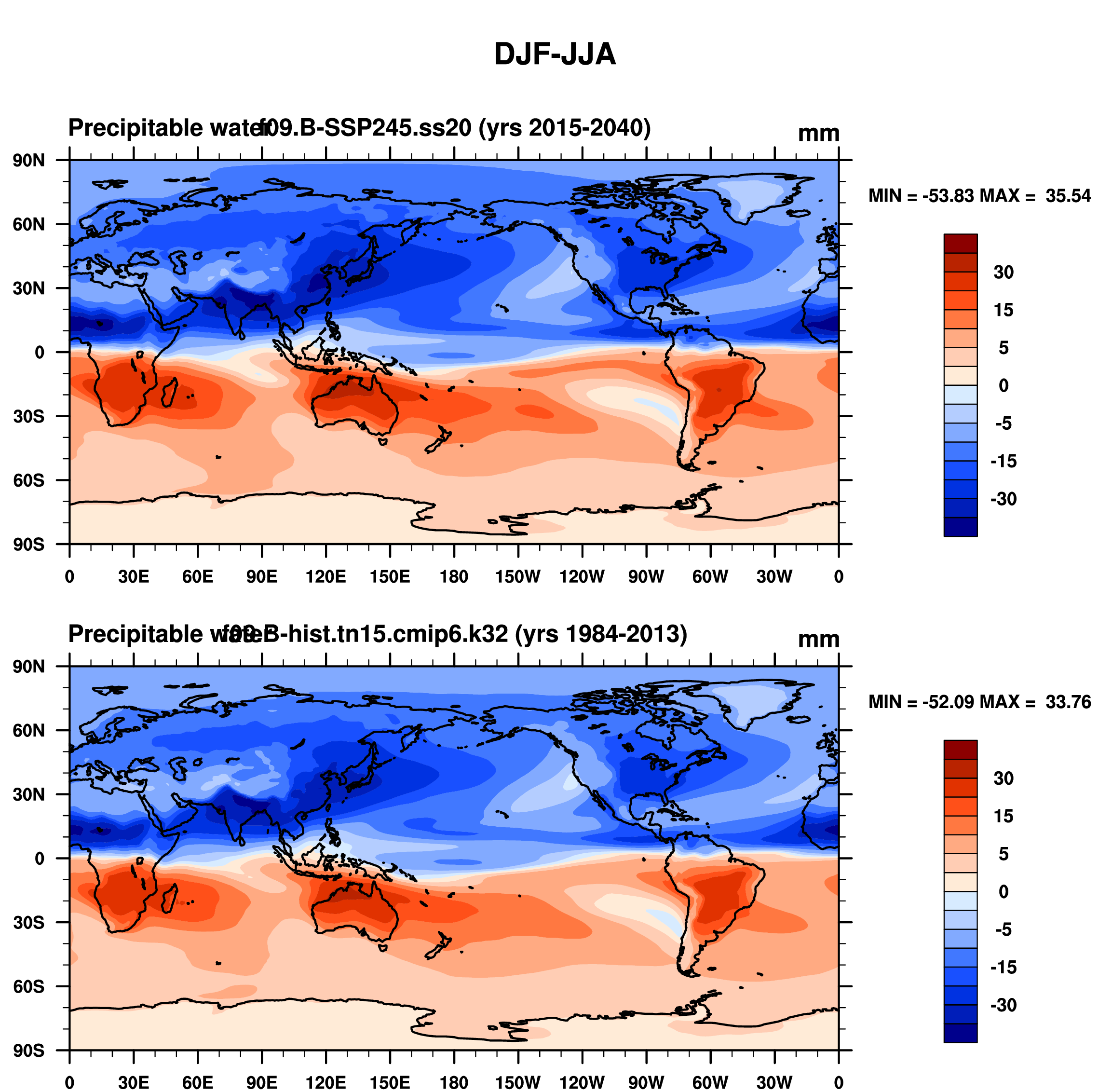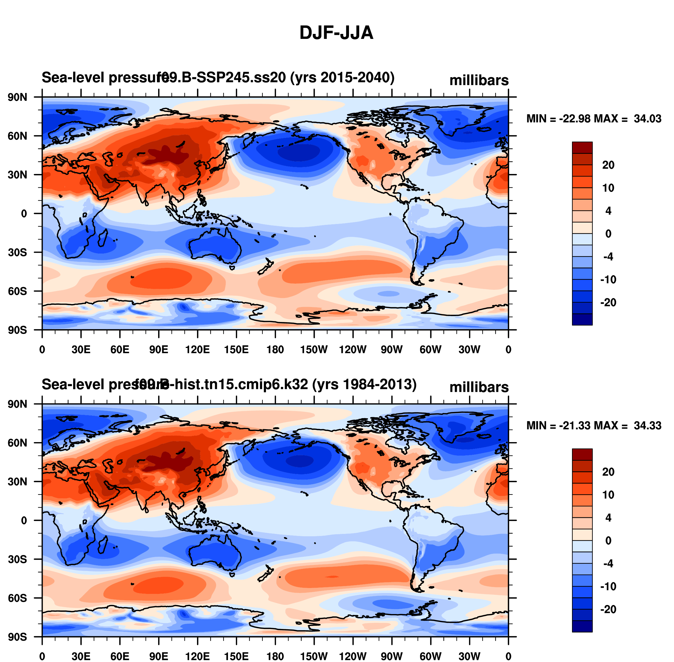 DIAG Set 9 - Horizontal contour plots of DJF-JJA differences