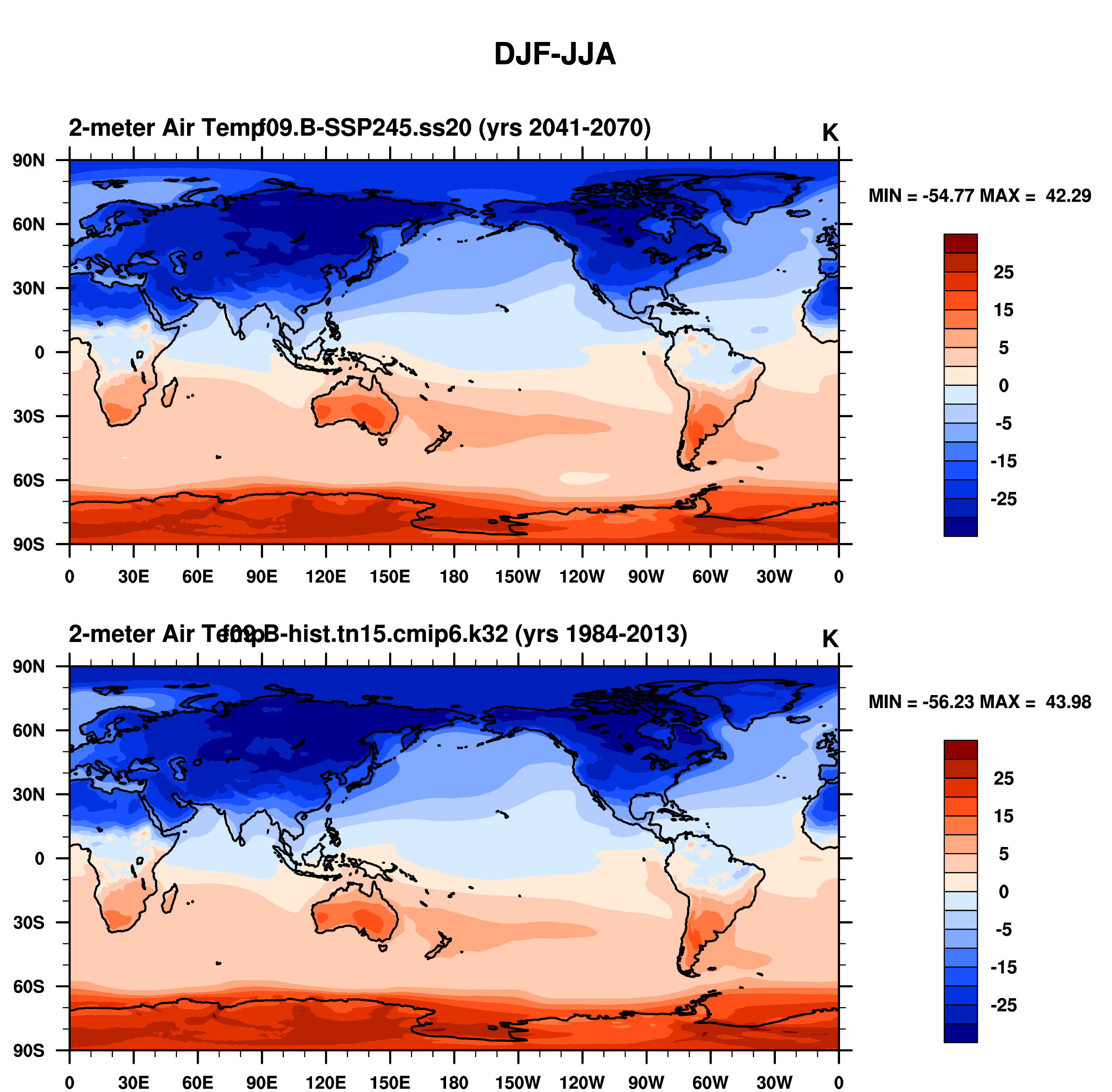 DIAG Set 9 - Horizontal contour plots of DJF-JJA differences