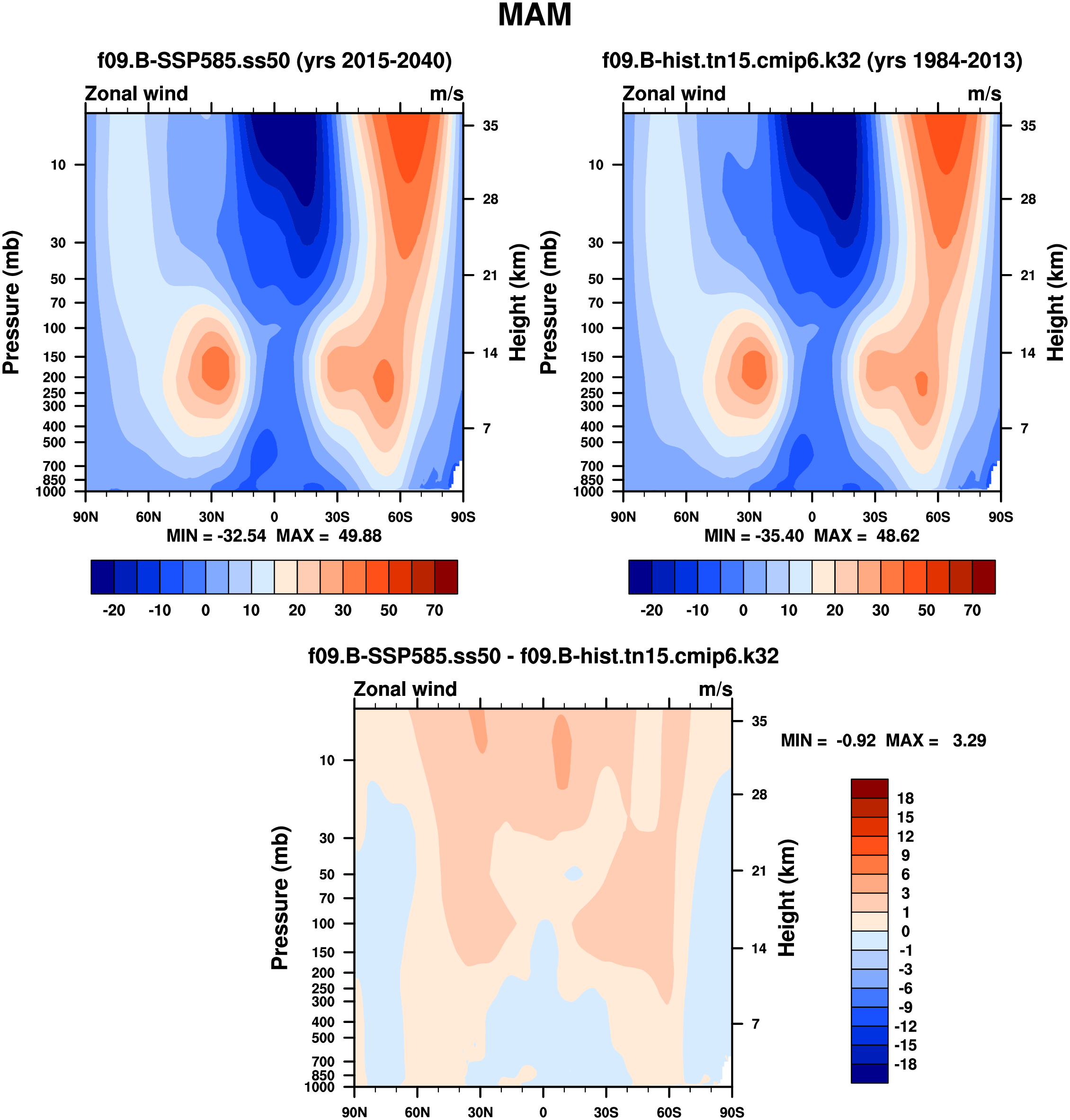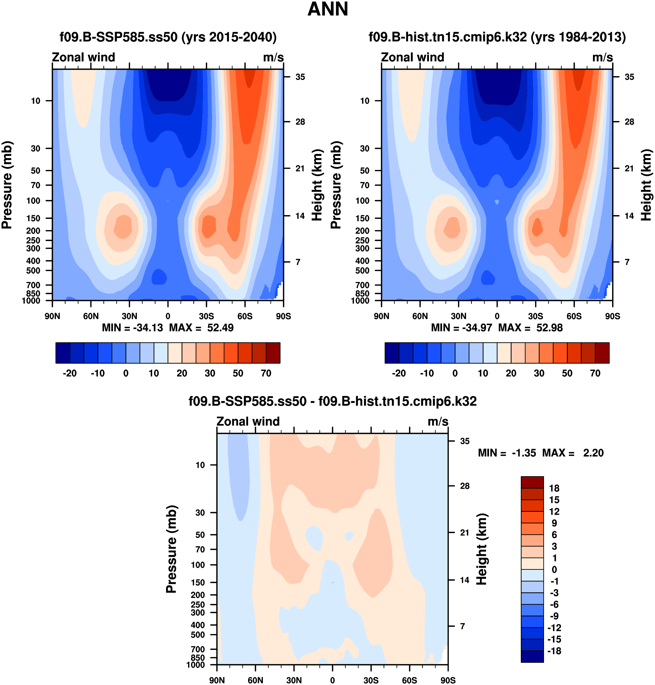 DIAG WACCM Set 1 - Vertical contour plots of DJF, MAM, JJA, SON and ANN zonal means