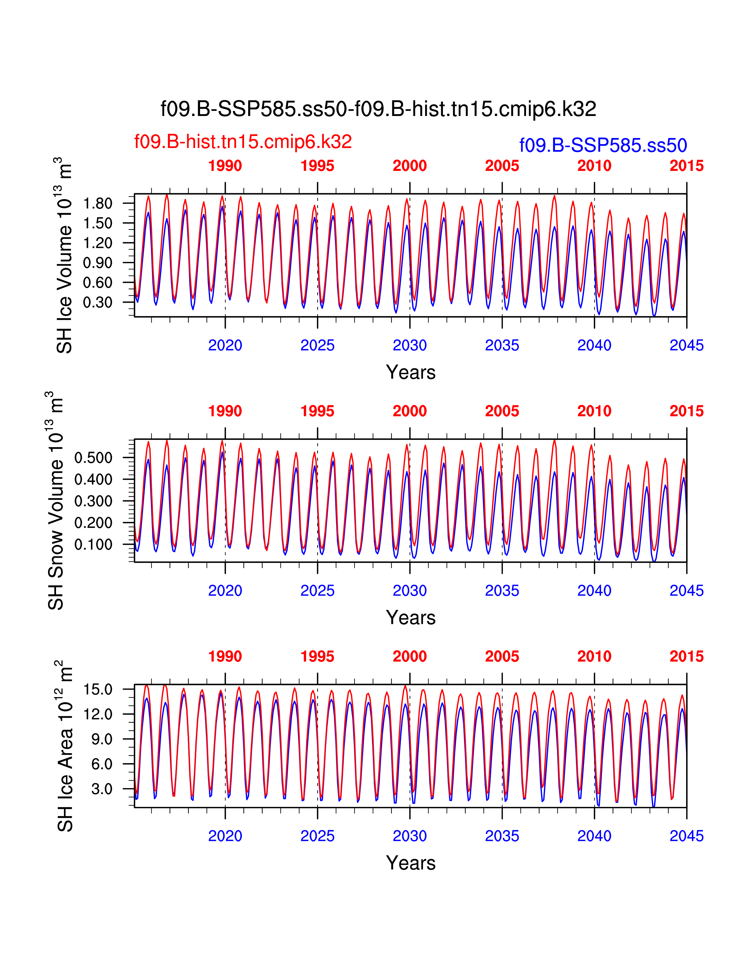 Comparison of runs f09.B-SSP585.ss50-f09.B-hist.tn15.cmip6.k32: