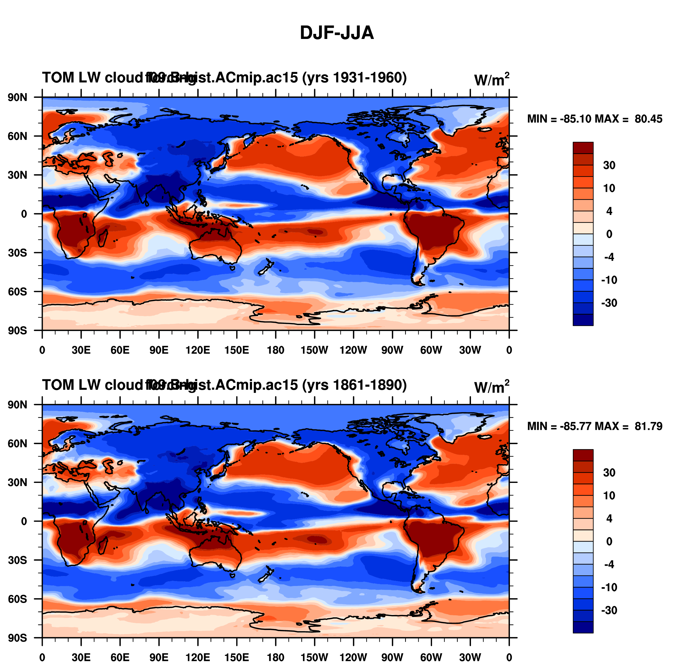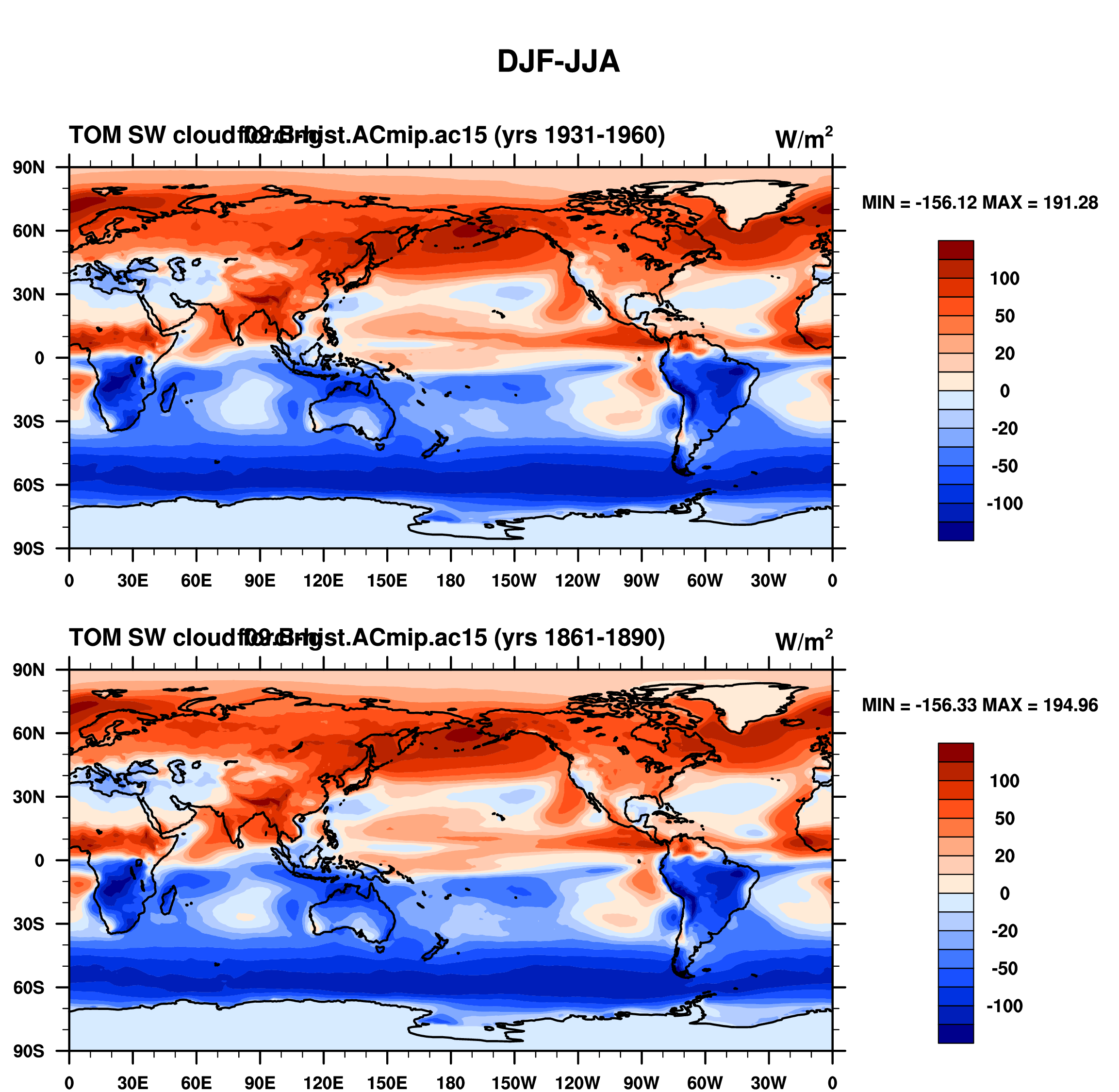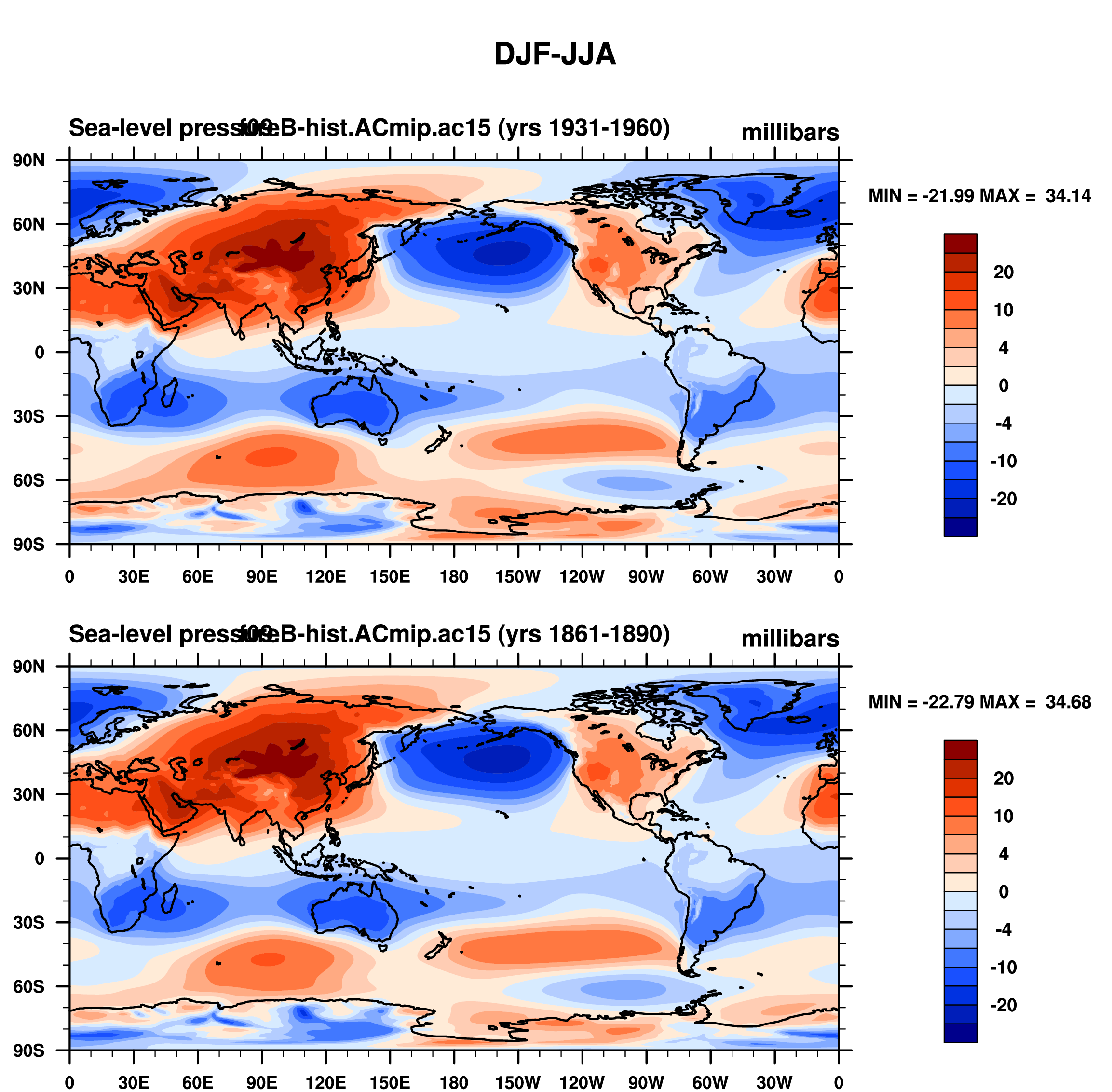 DIAG Set 9 - Horizontal contour plots of DJF-JJA differences