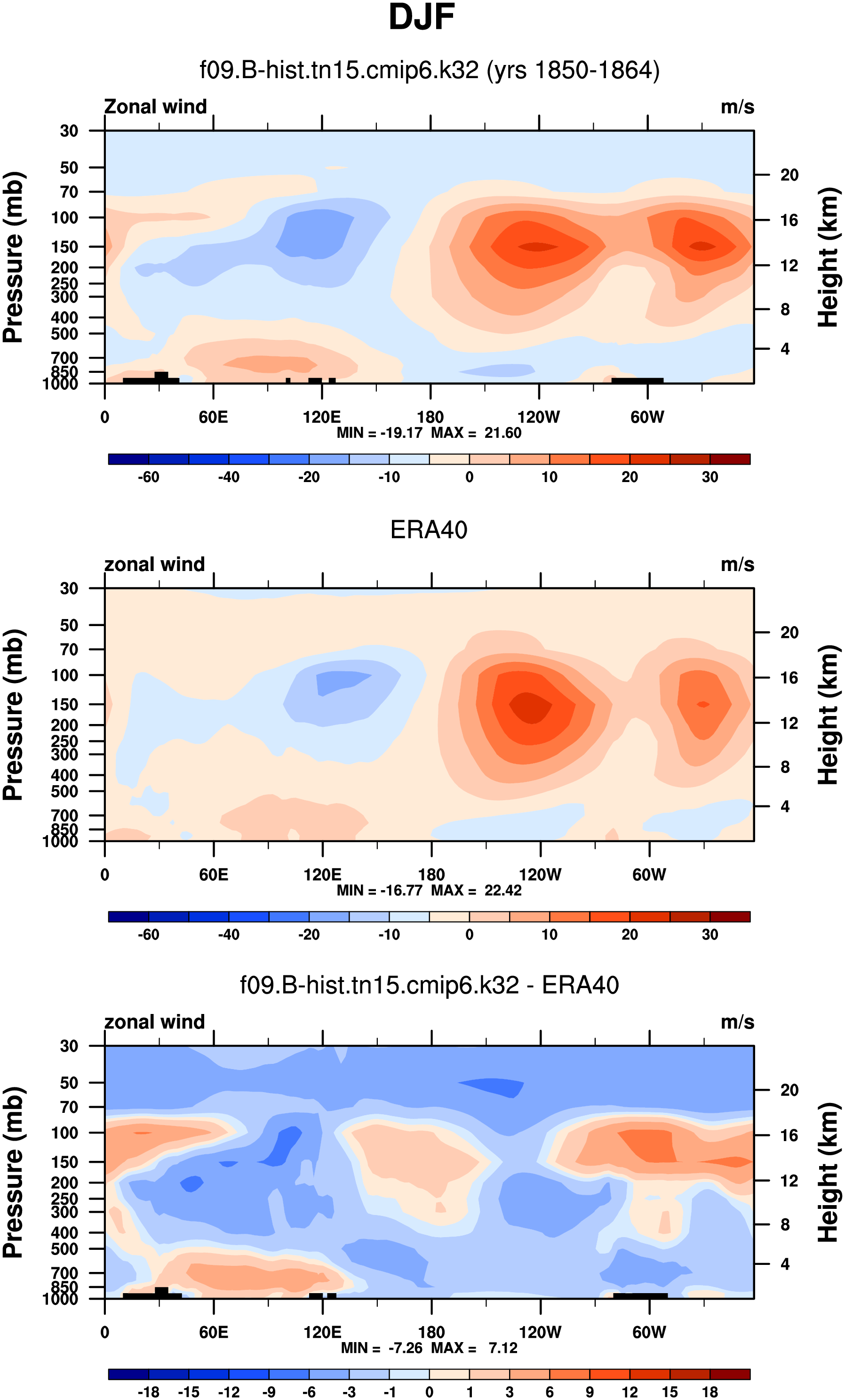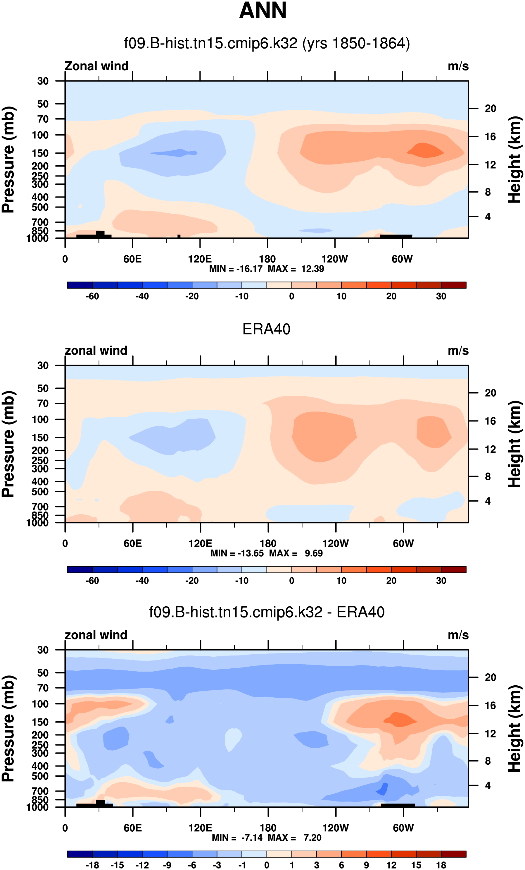 DIAG Set 4a - Vertical contour (XZ) plots of DJF, JJA and ANN meridional means