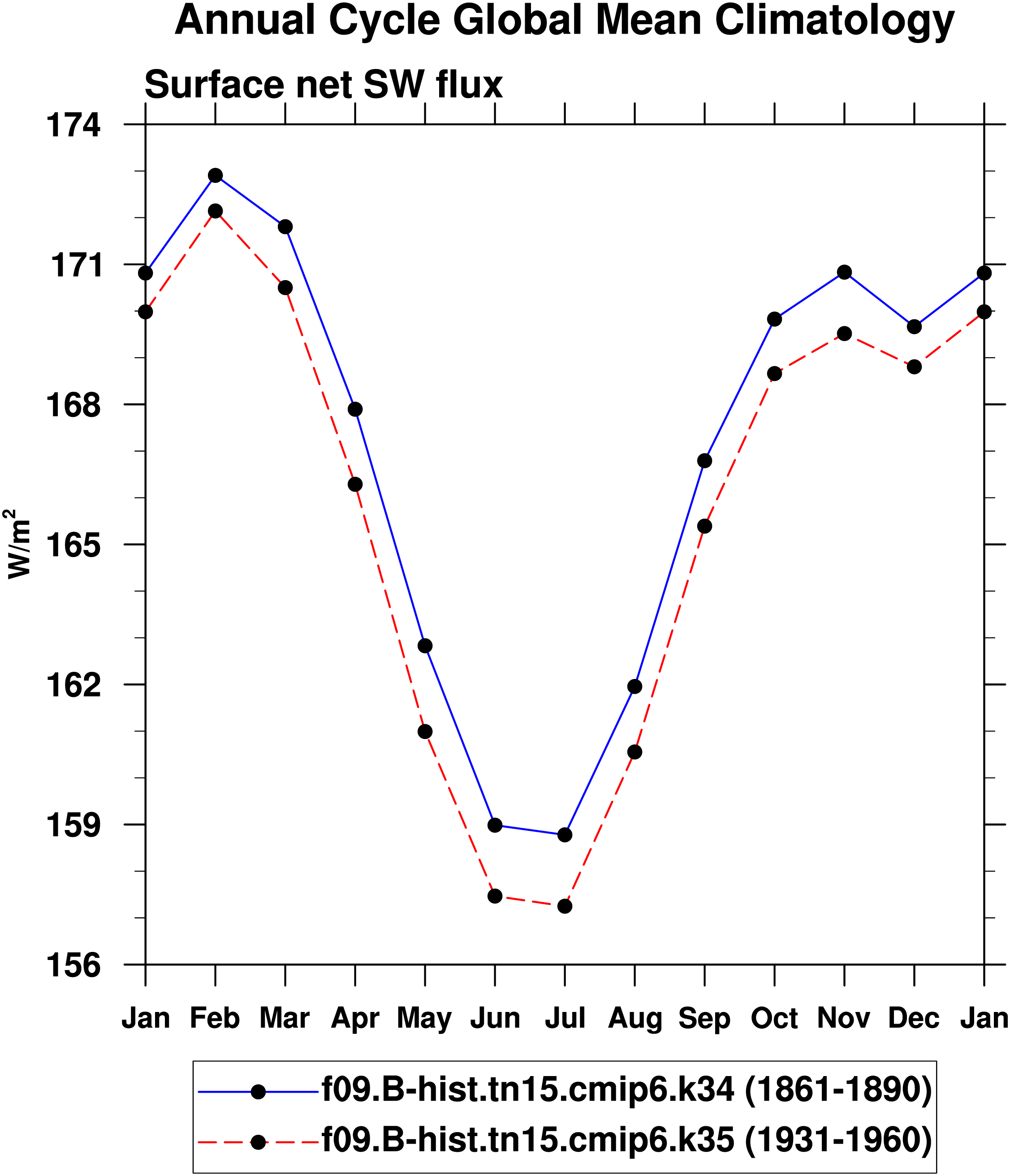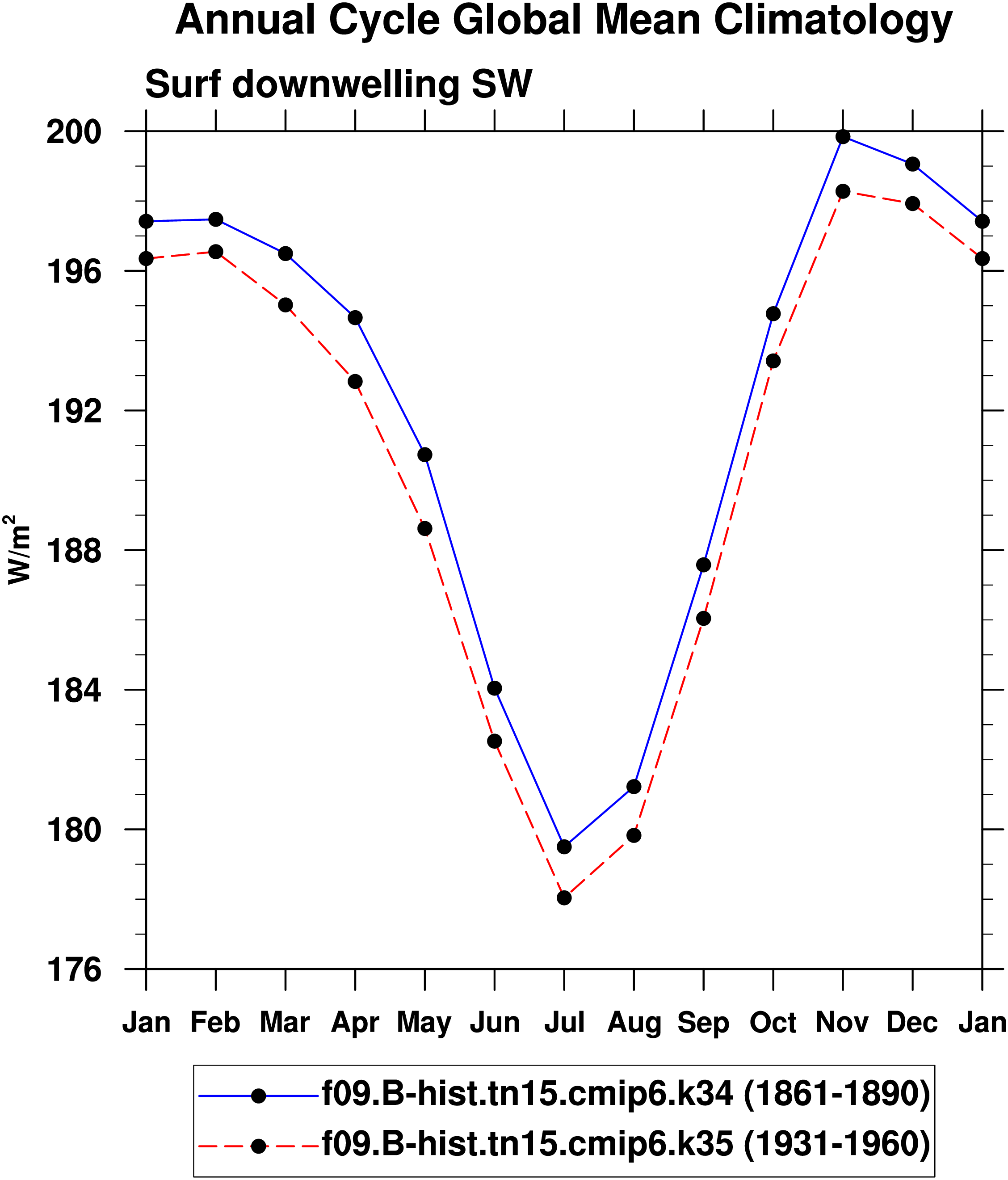 DIAG Set 10 - Annual cycle line plots of global means