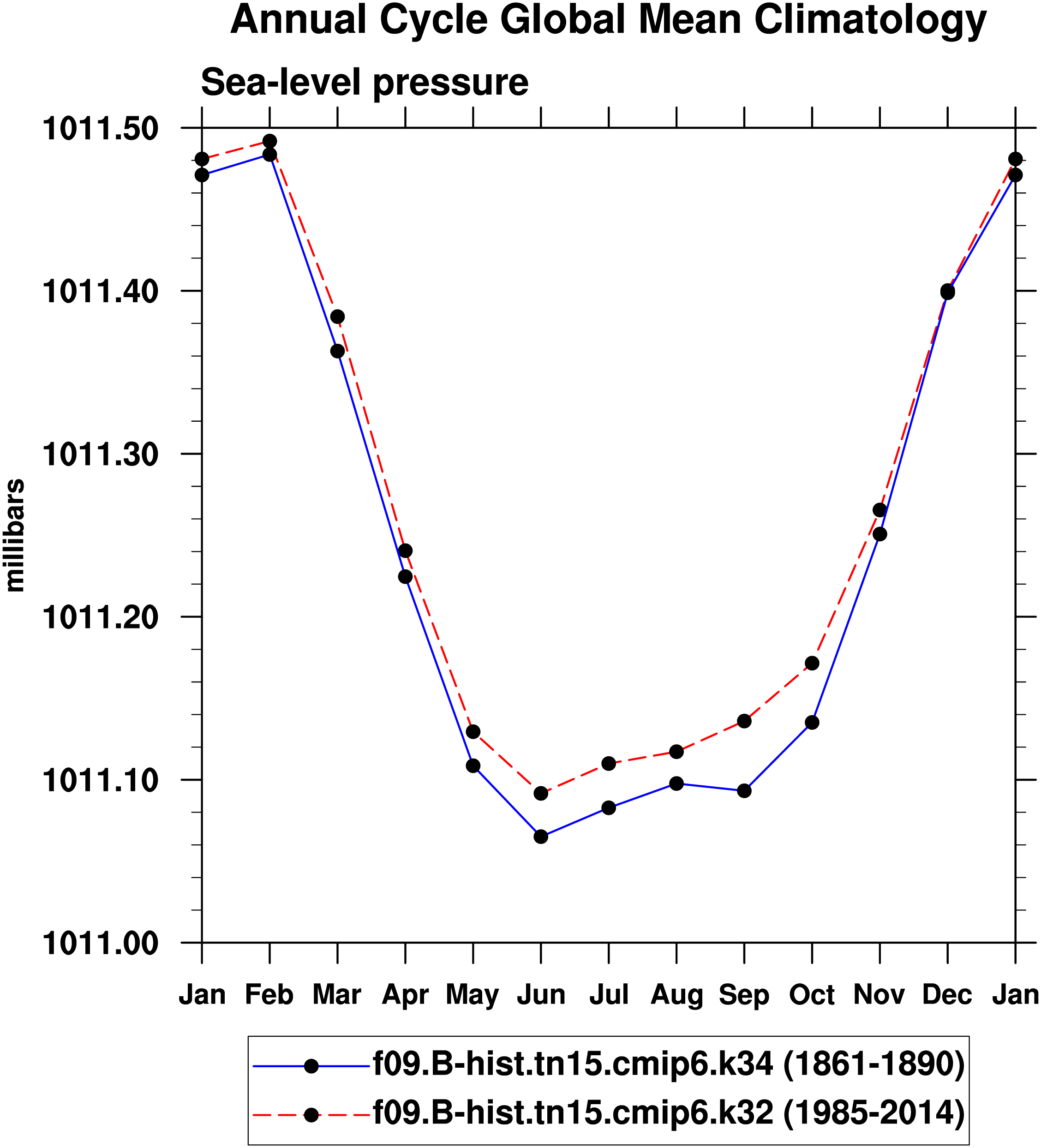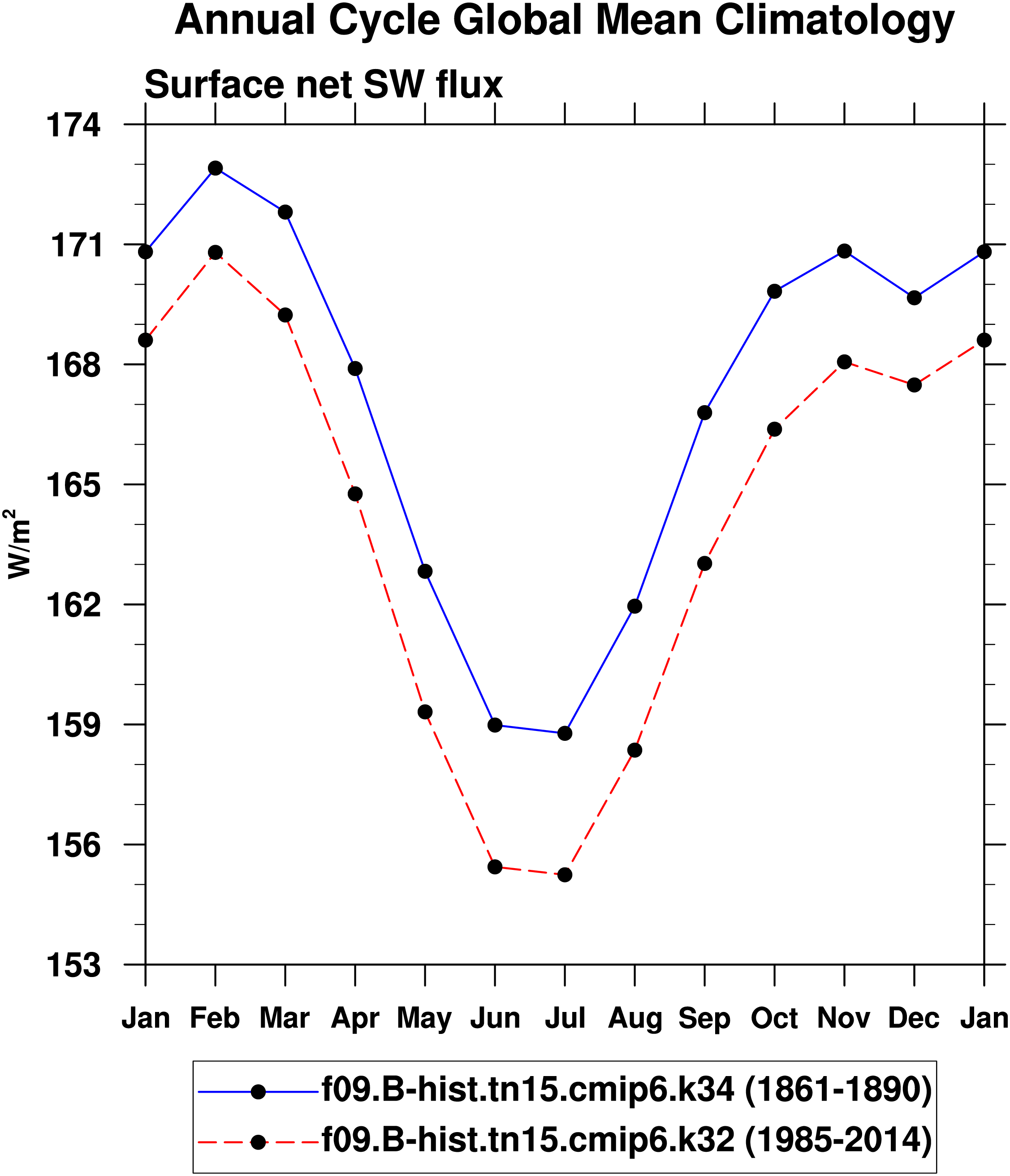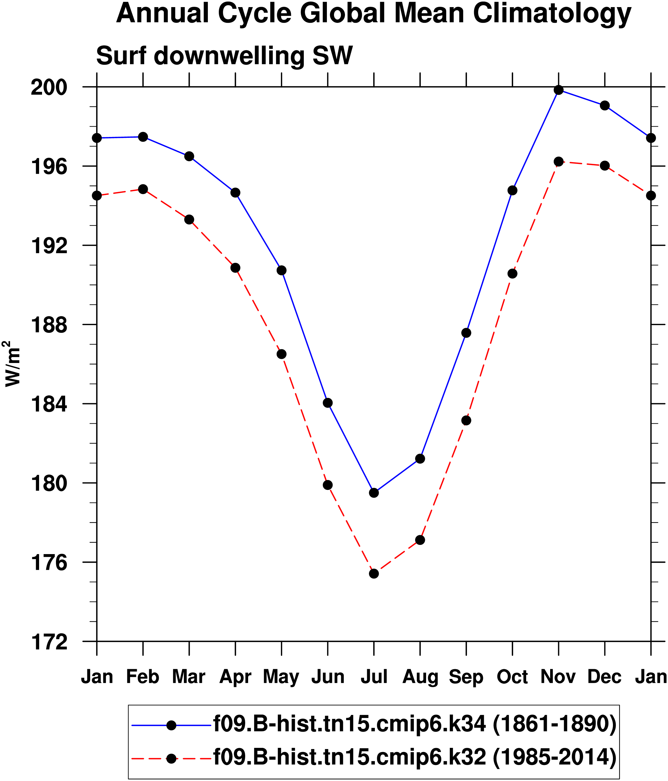 DIAG Set 10 - Annual cycle line plots of global means