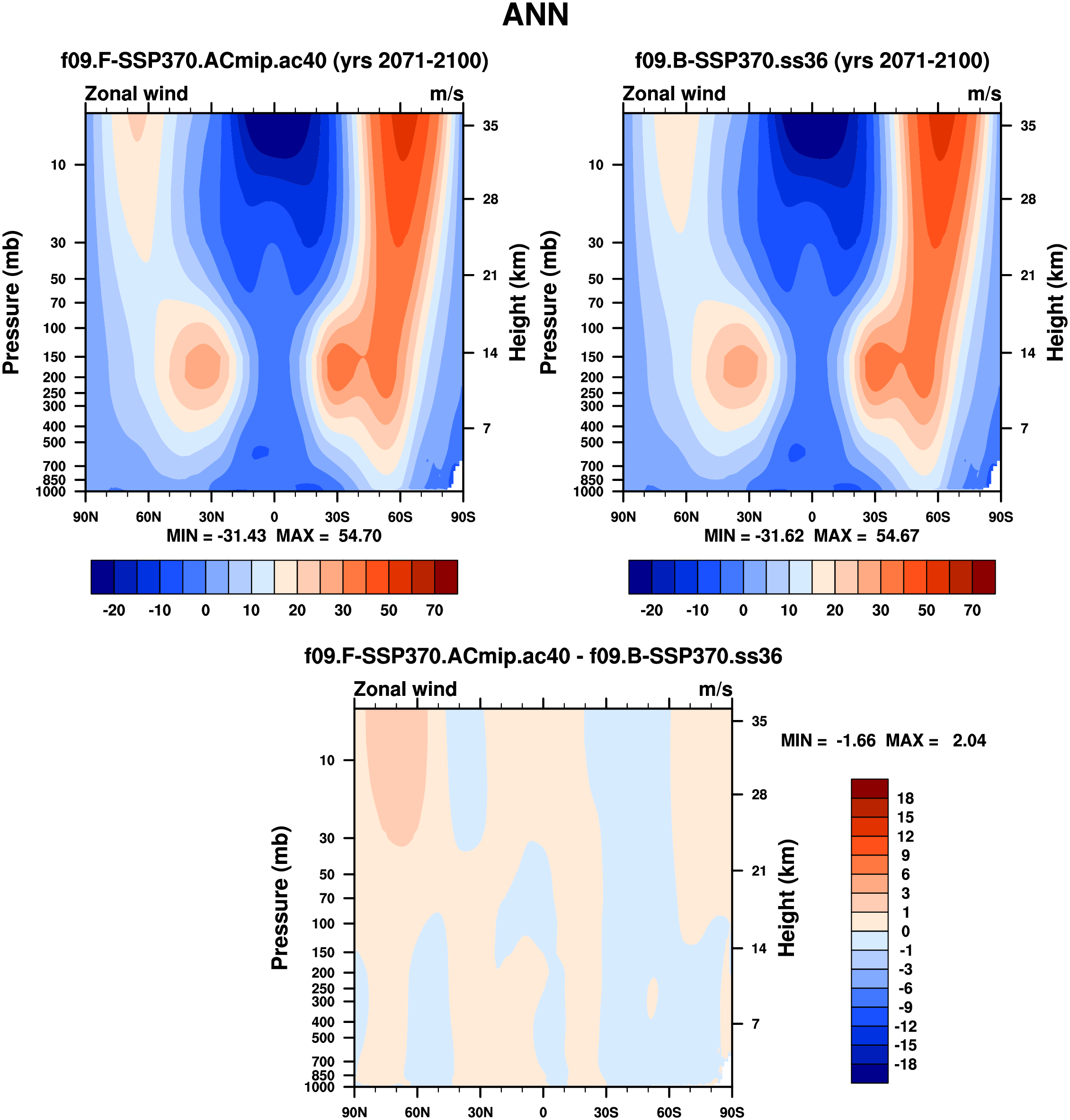 DIAG WACCM Set 1 - Vertical contour plots of DJF, MAM, JJA, SON and ANN zonal means