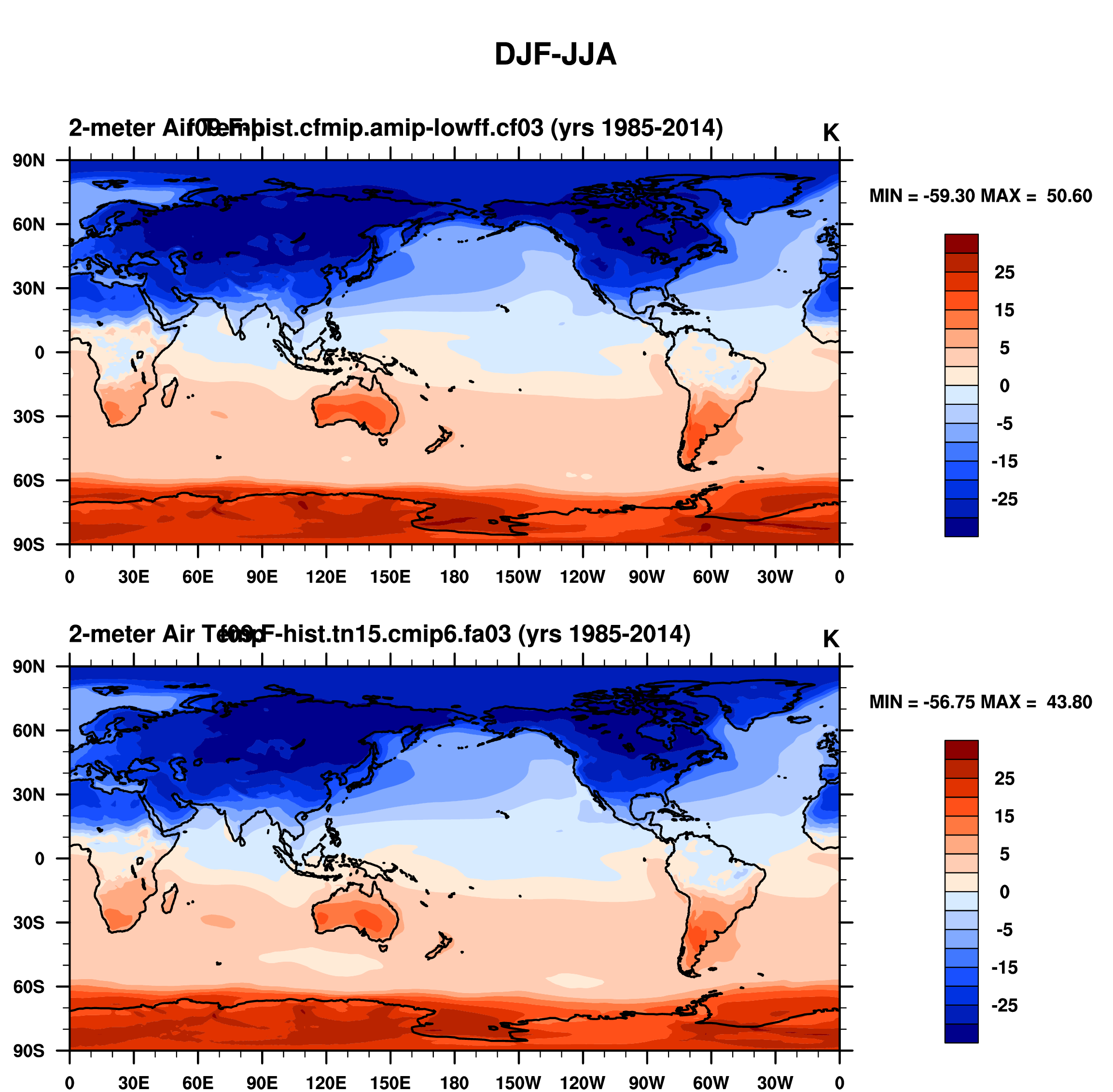 DIAG Set 9 - Horizontal contour plots of DJF-JJA differences