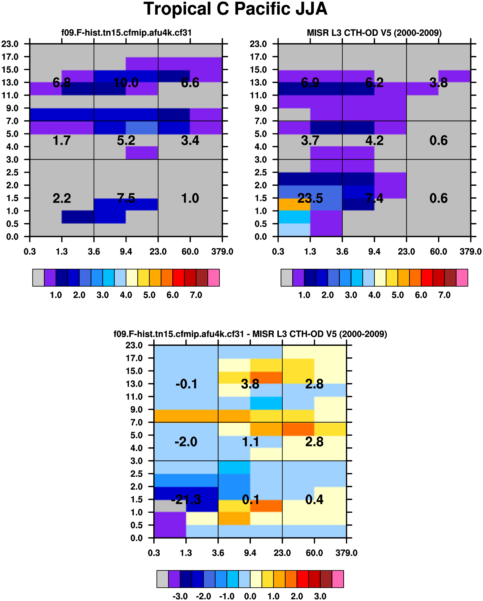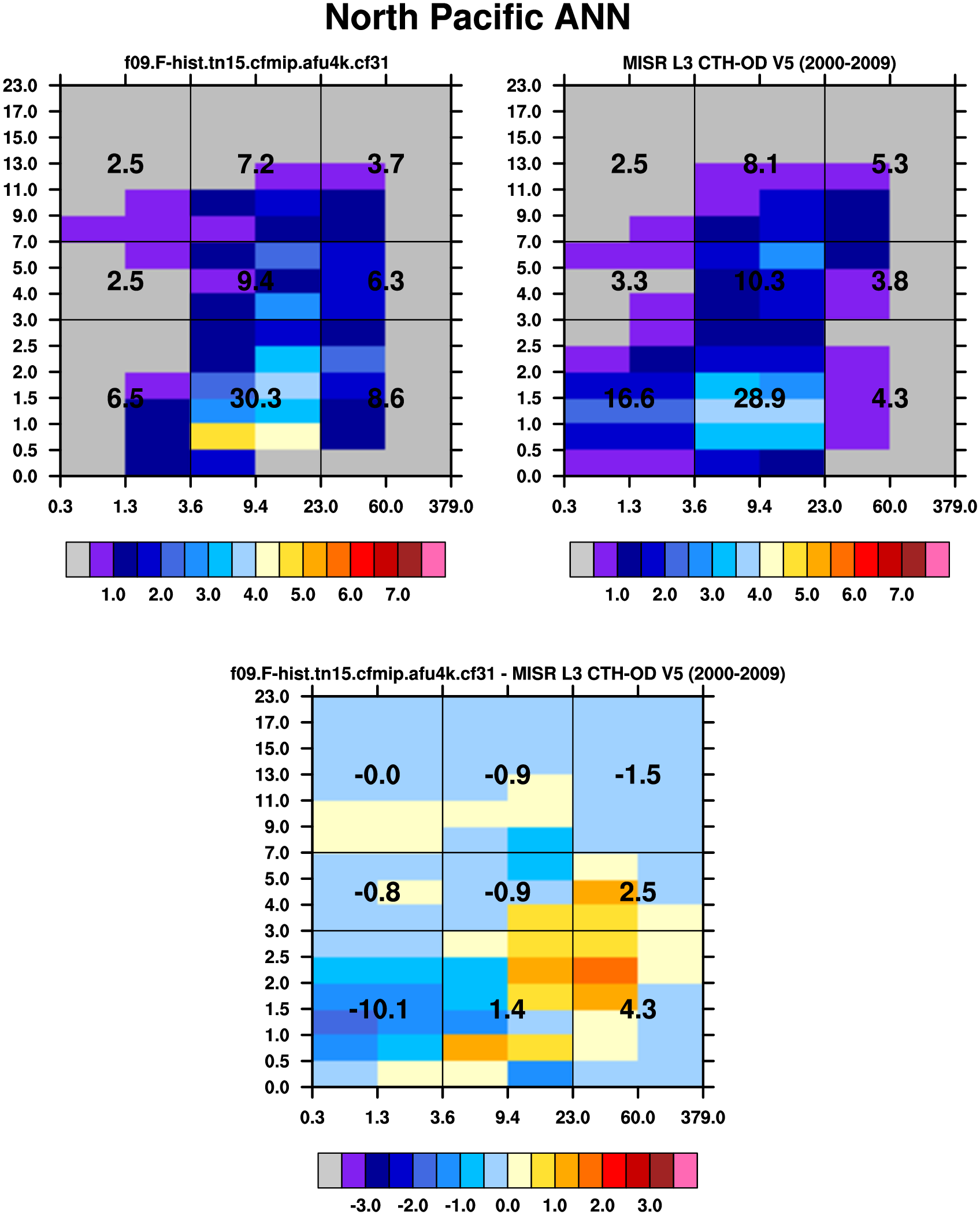 MISR L3 CTH-OD V5 (Mar2000-Nov2009) daytime 2D joint histograms of cloud fraction