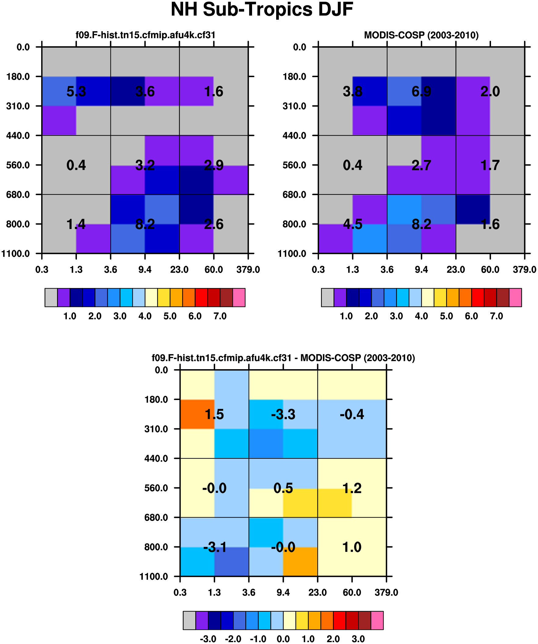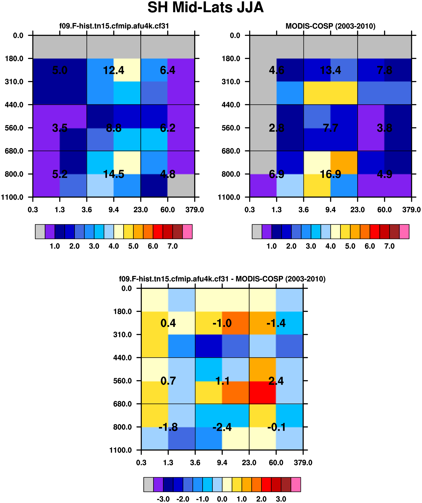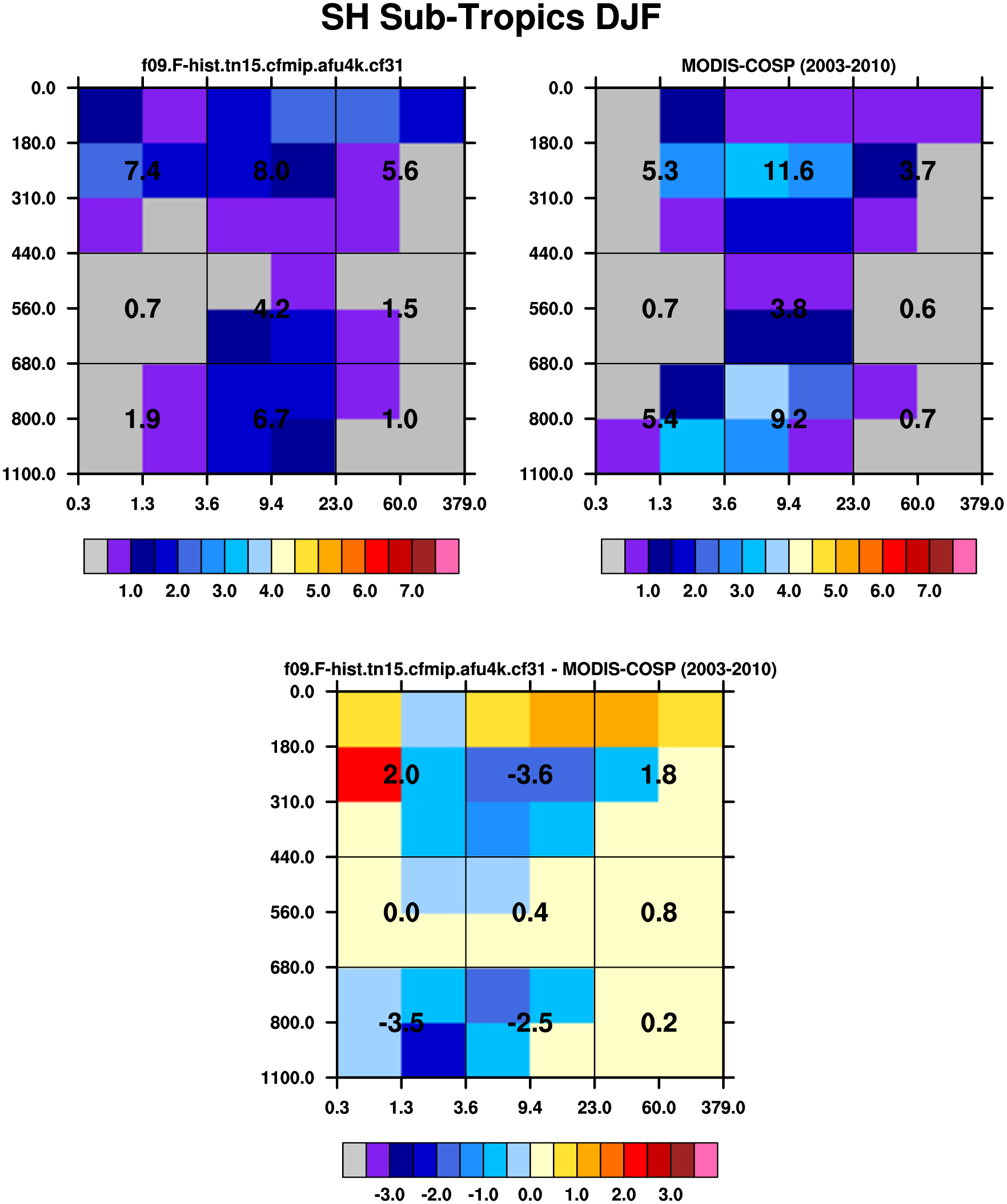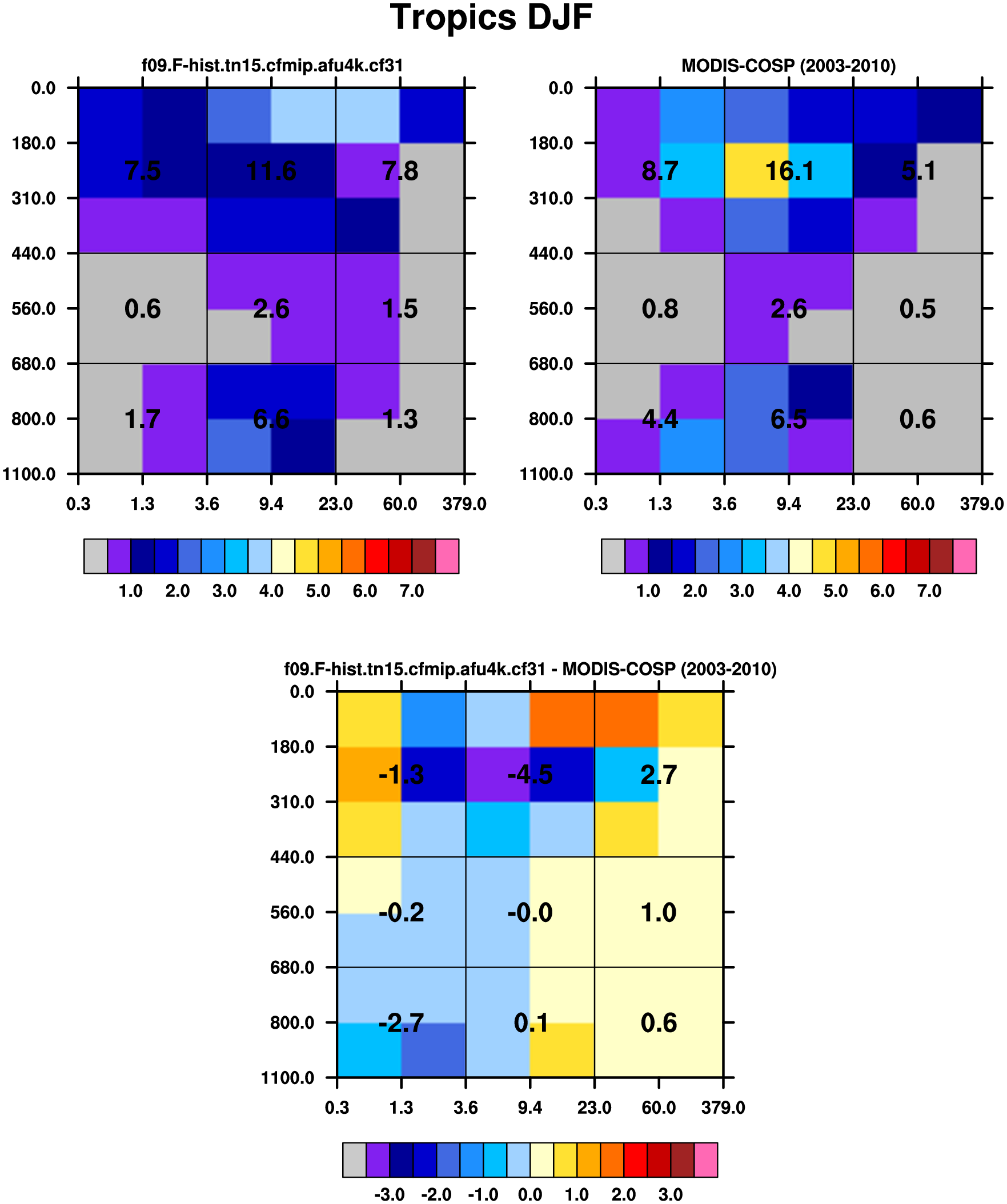 MODIS-COSP (2003-2030) daytime 2D joint histograms of cloud fraction