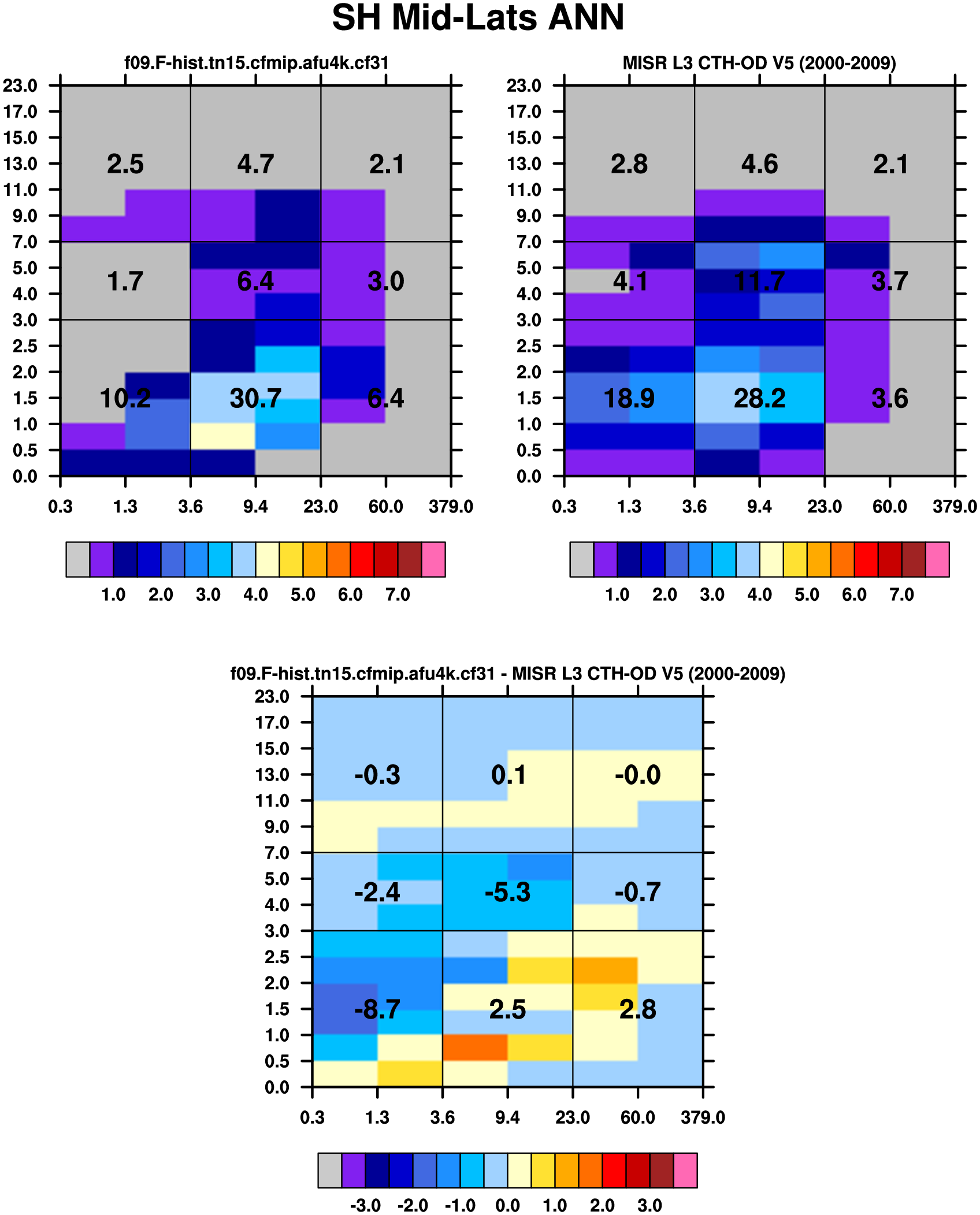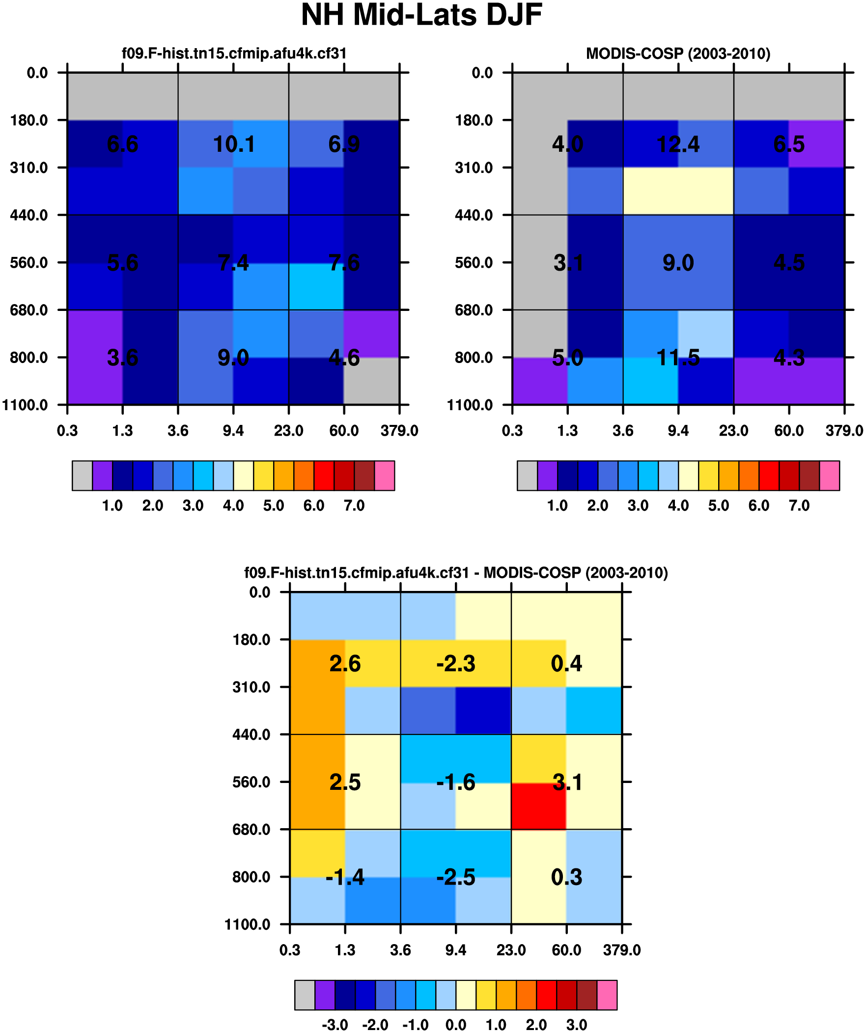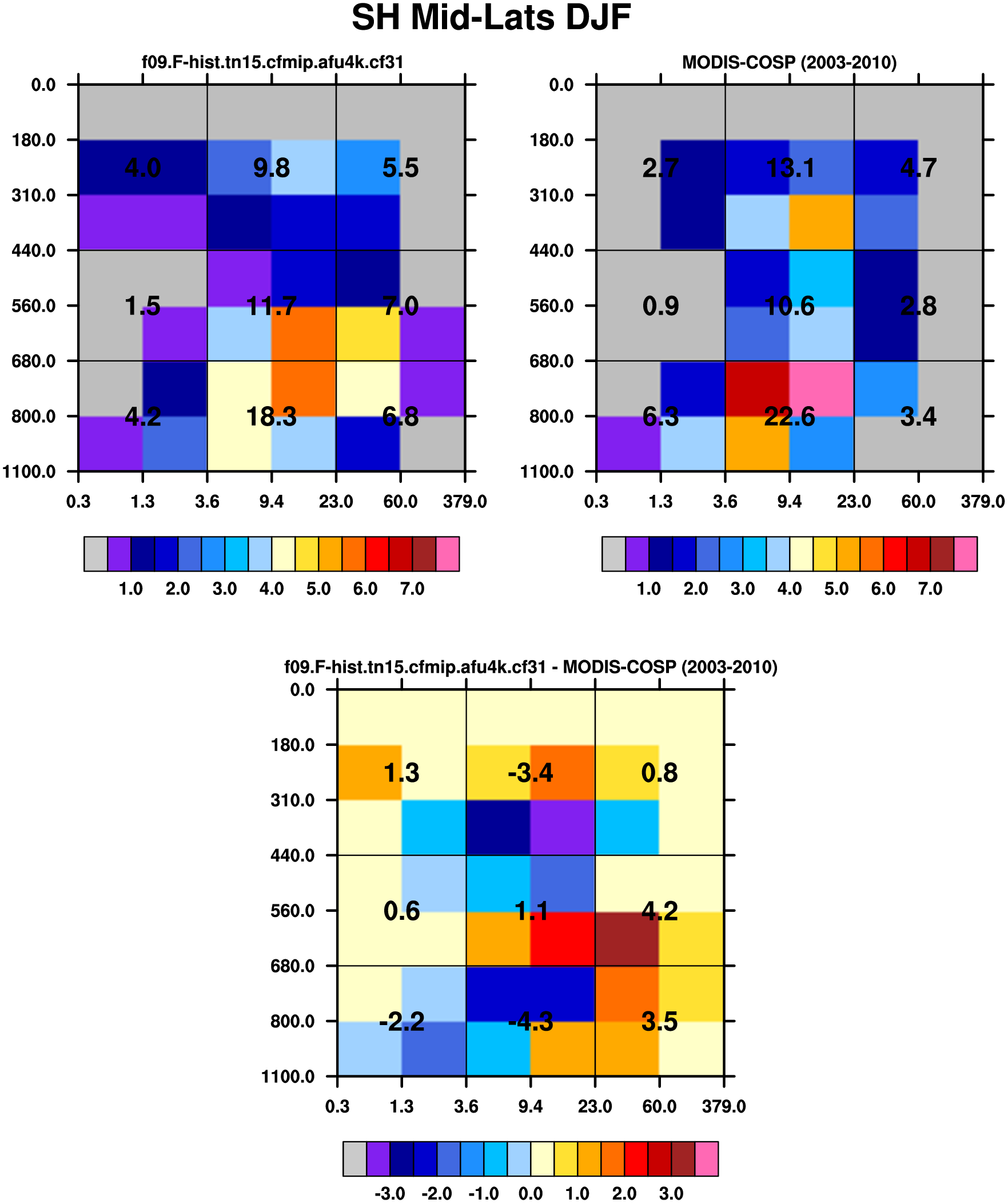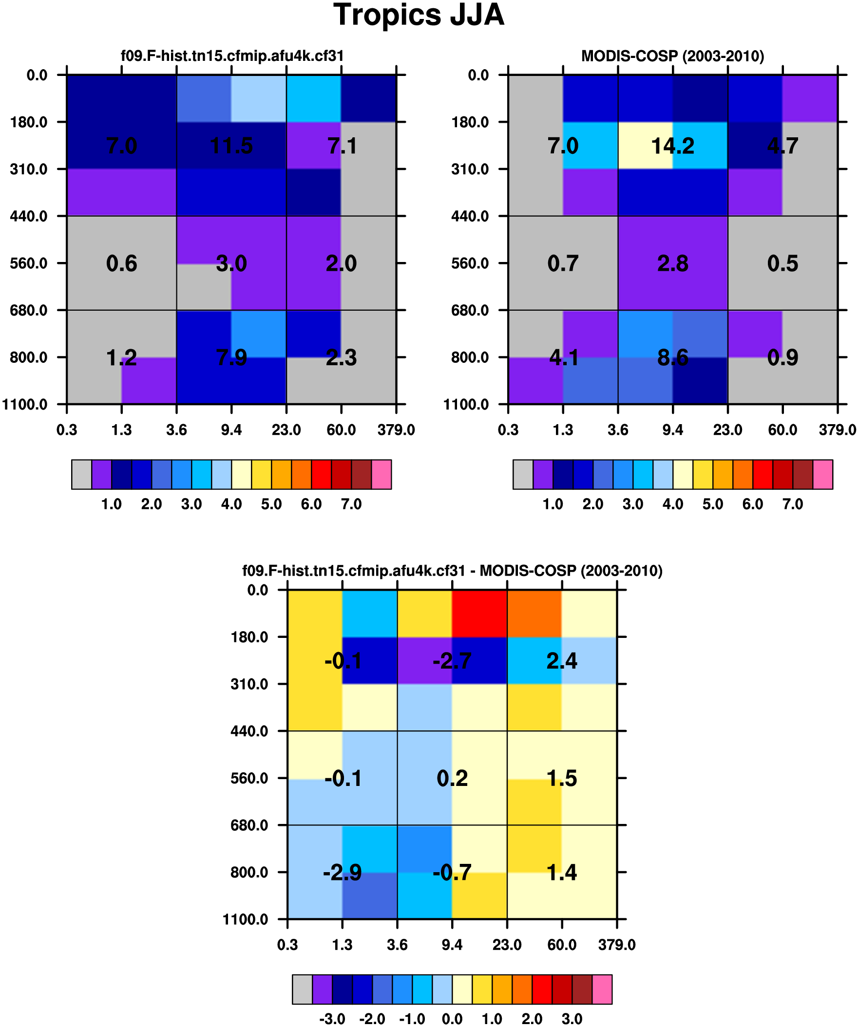 MODIS-COSP (2003-2030) daytime 2D joint histograms of cloud fraction