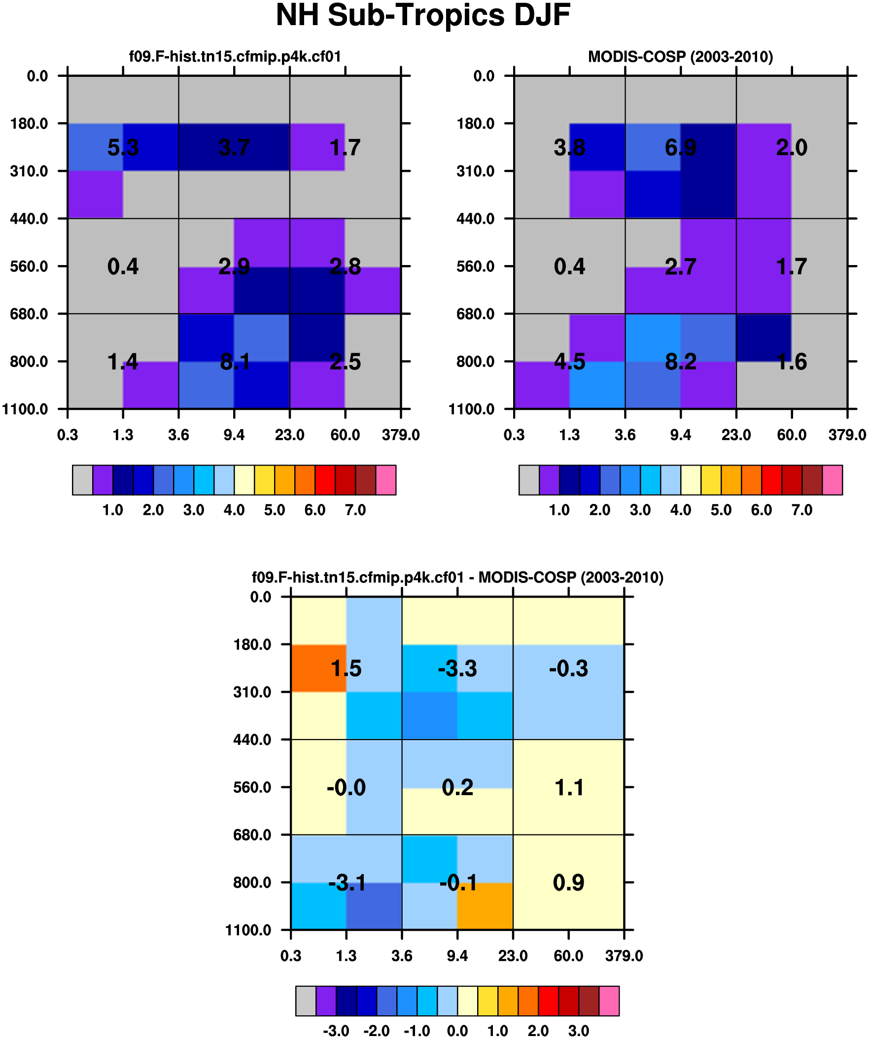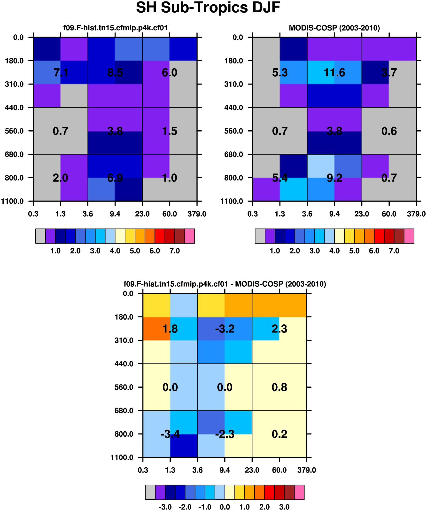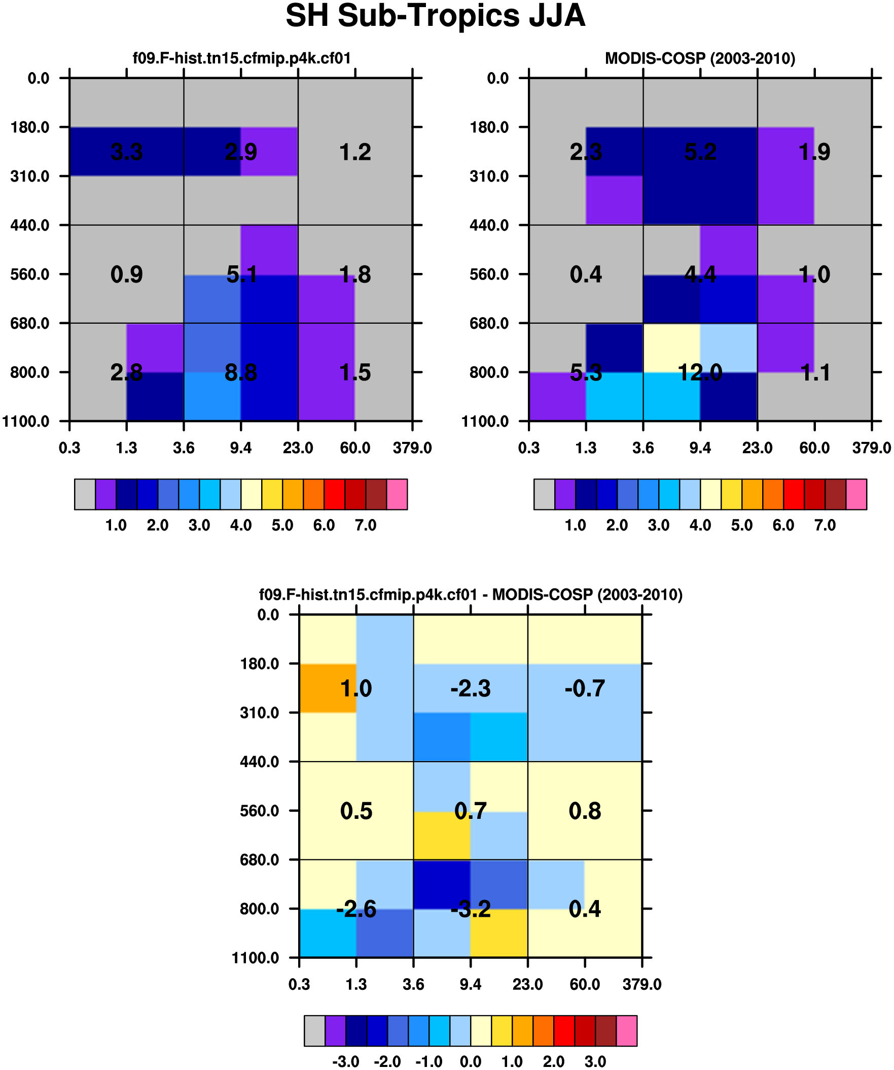 MODIS-COSP (2003-2030) daytime 2D joint histograms of cloud fraction