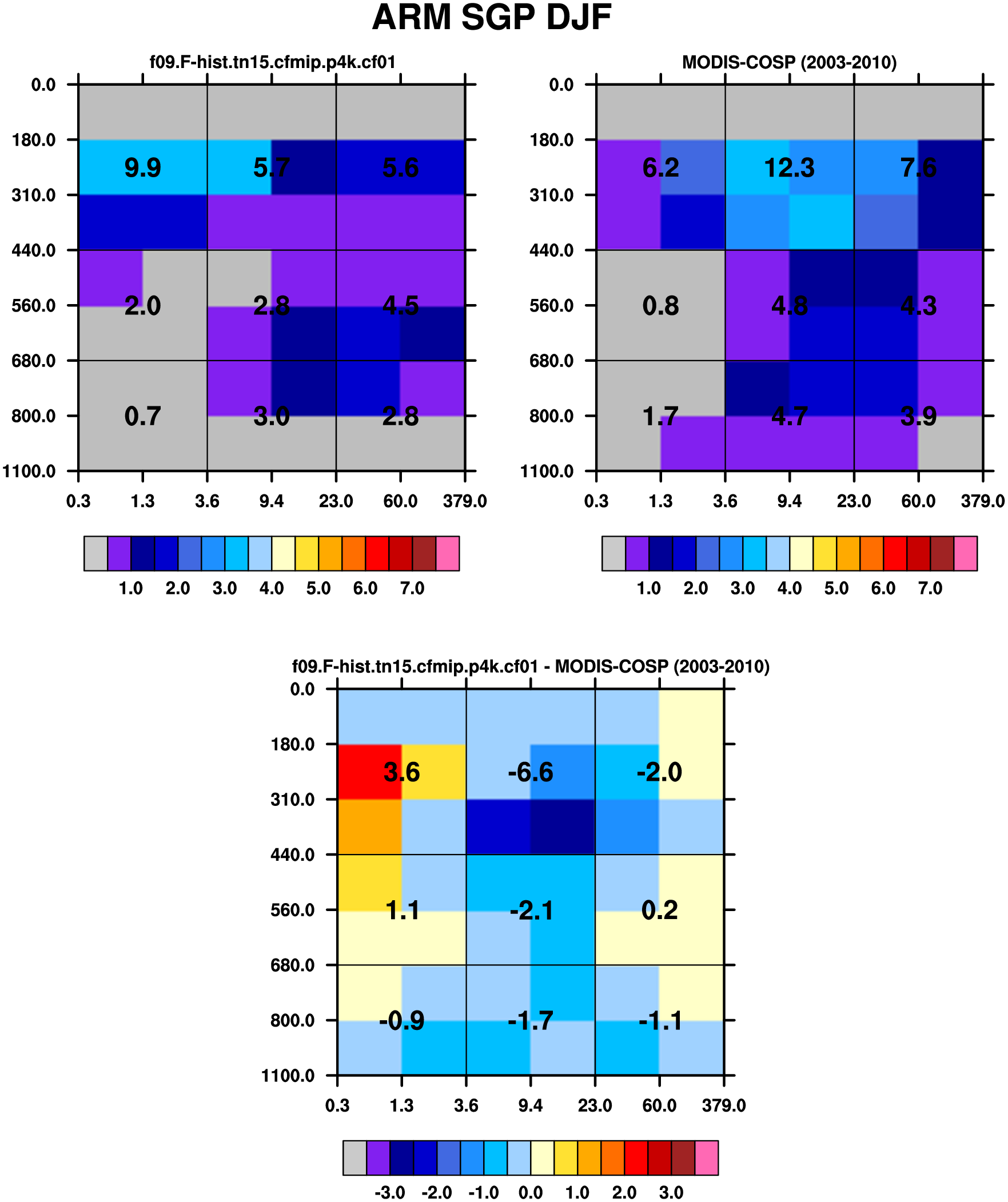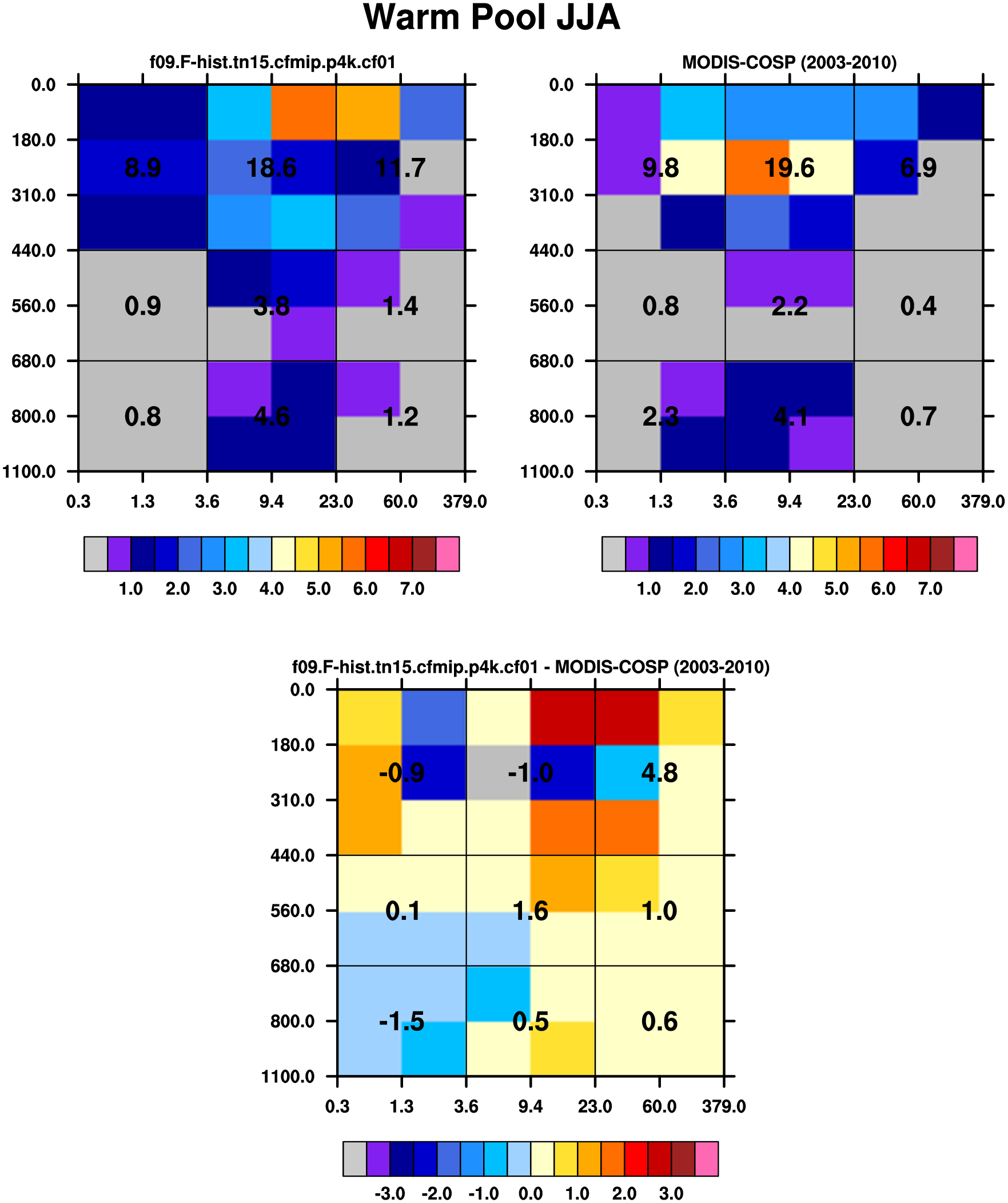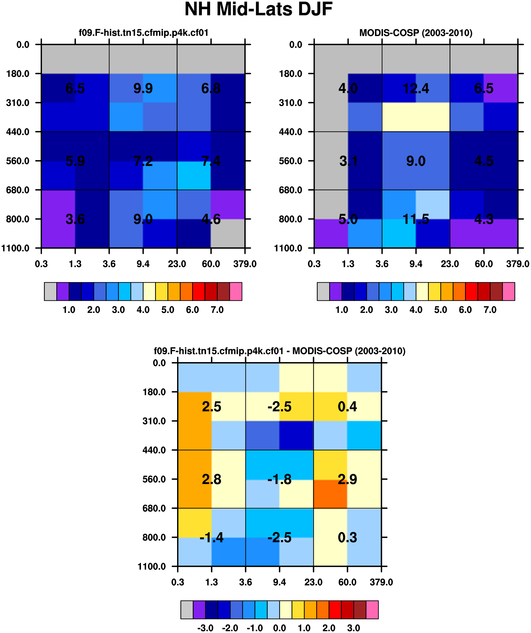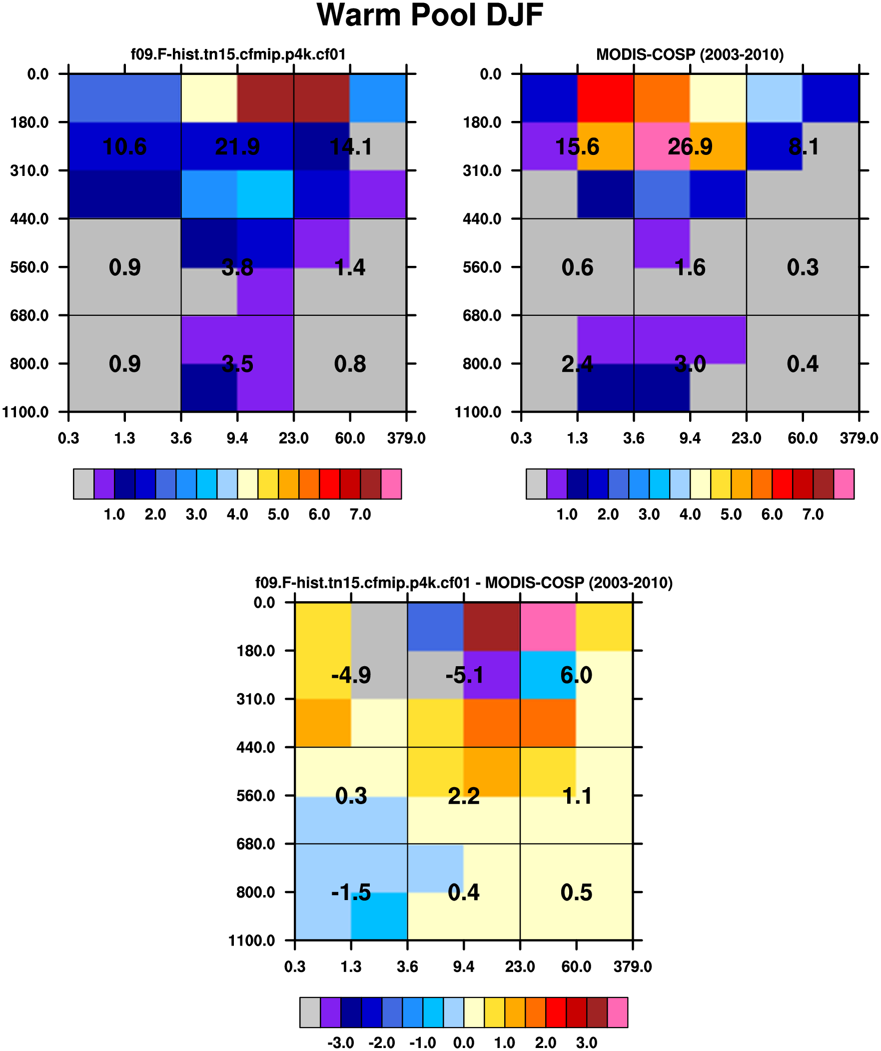 MODIS-COSP (2003-2030) daytime 2D joint histograms of cloud fraction