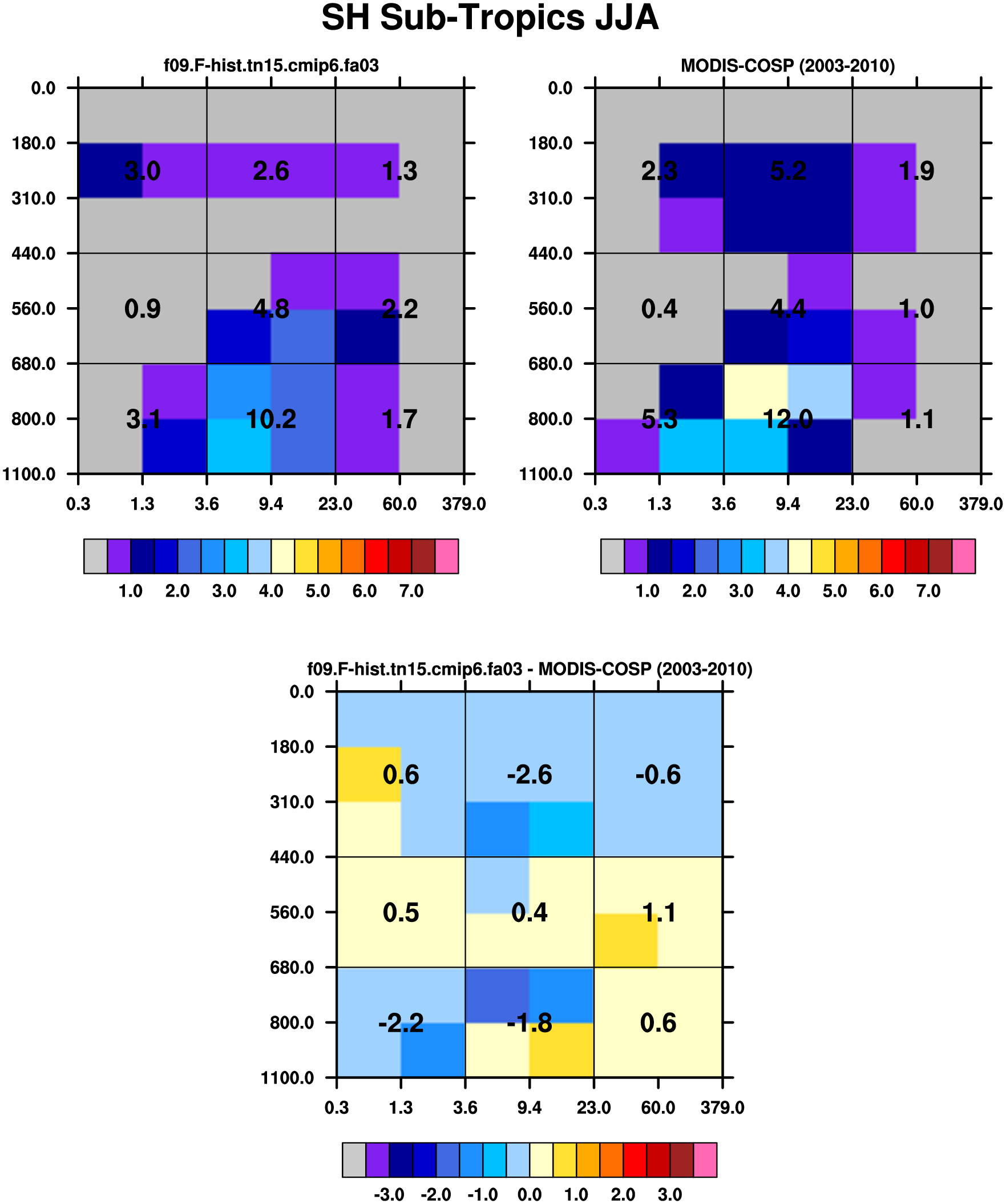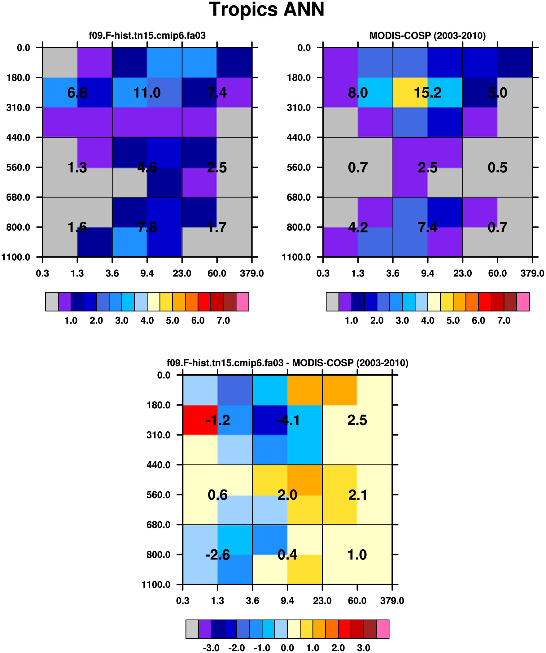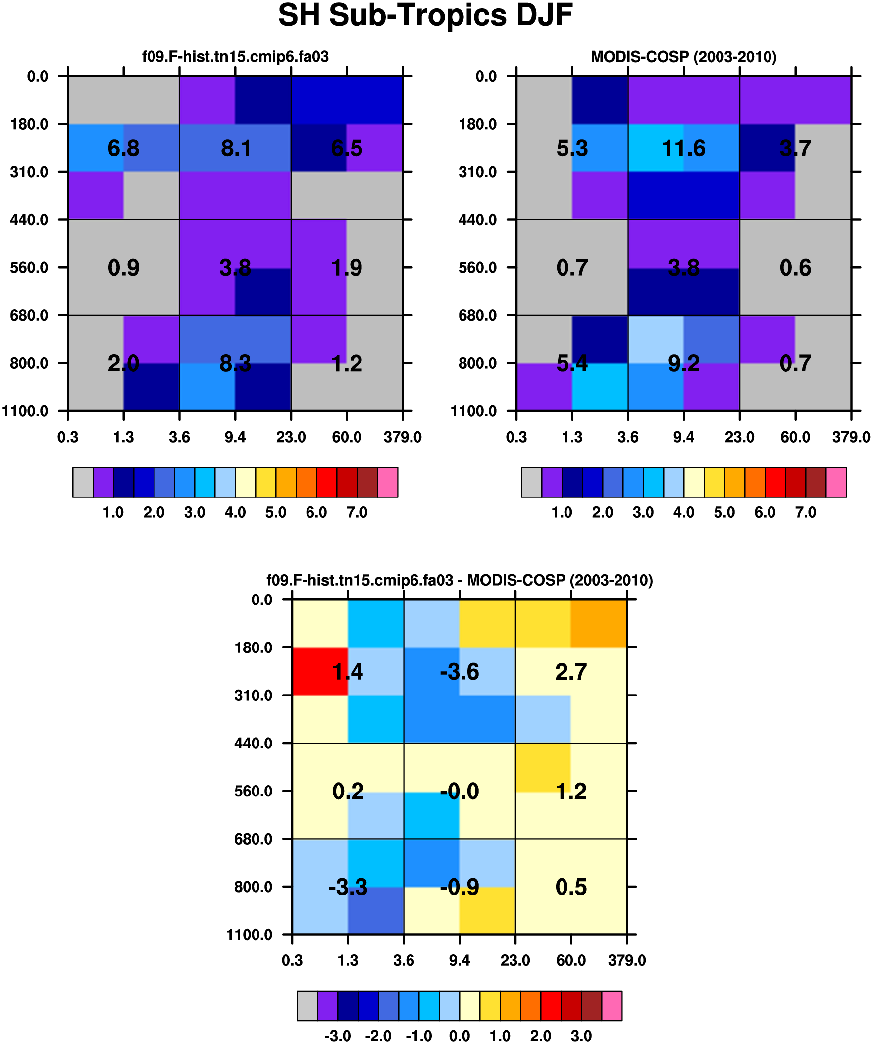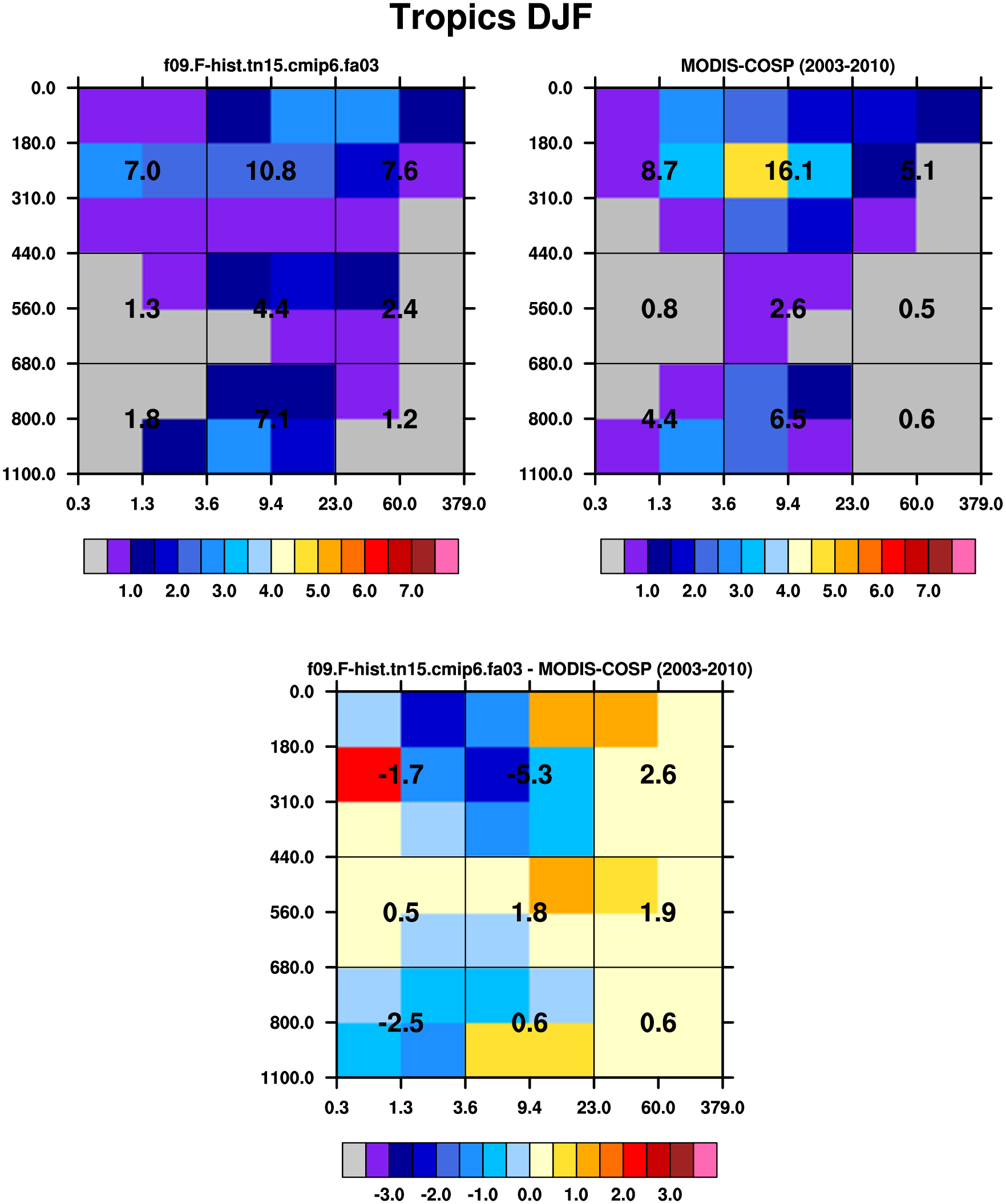 MODIS-COSP (2003-2030) daytime 2D joint histograms of cloud fraction