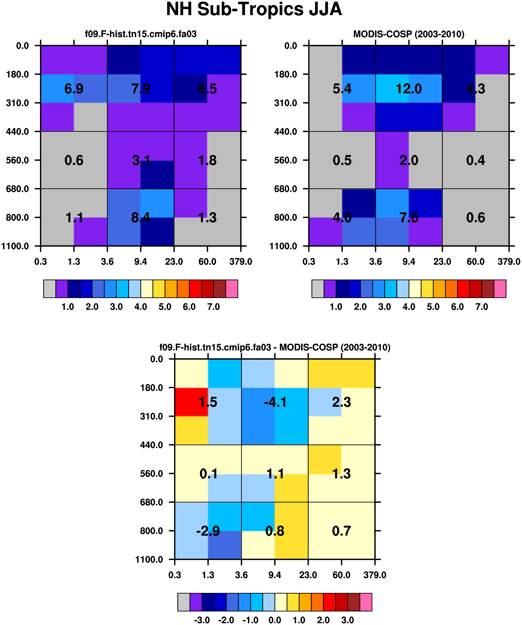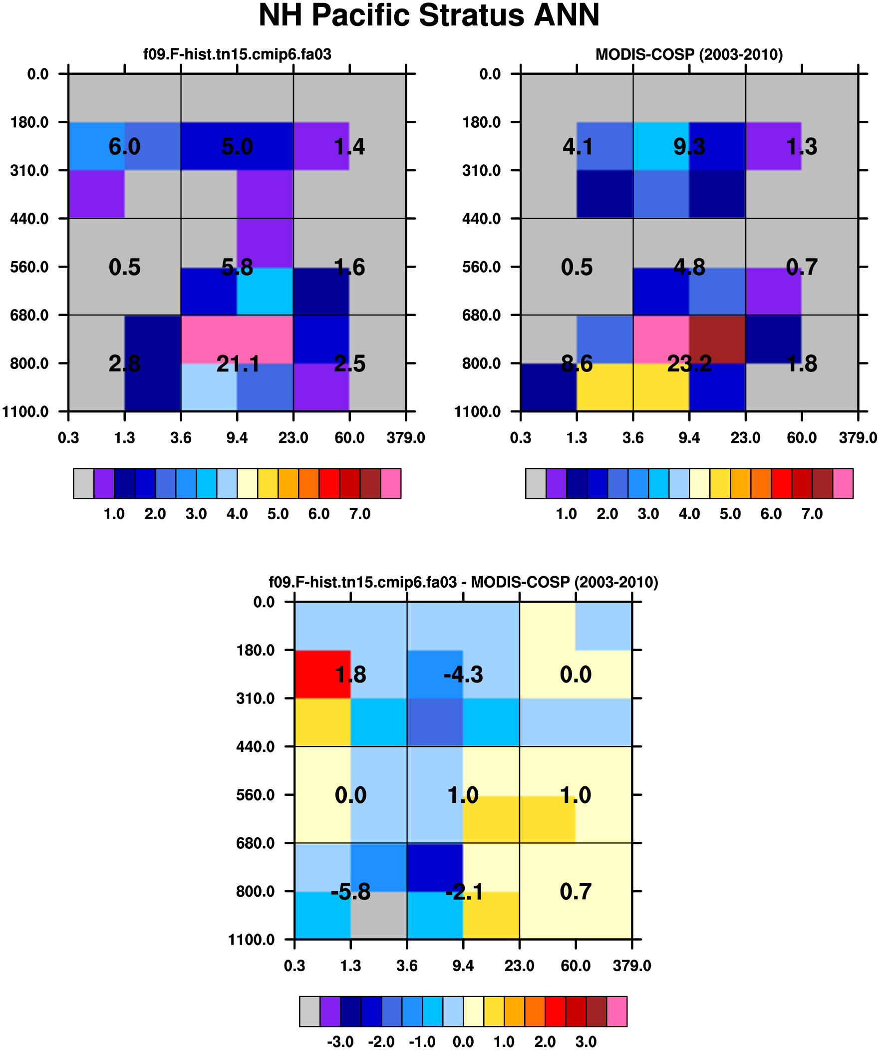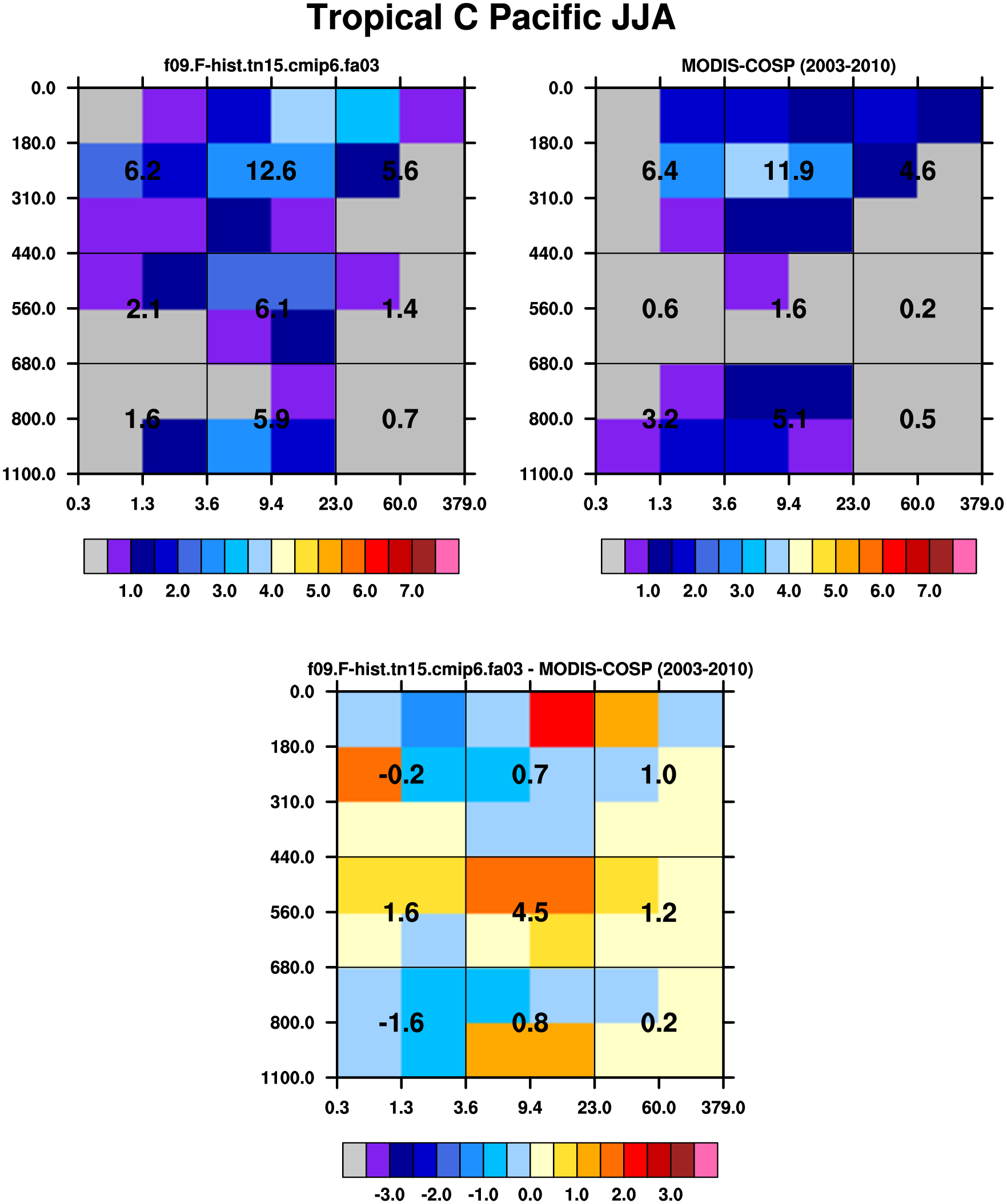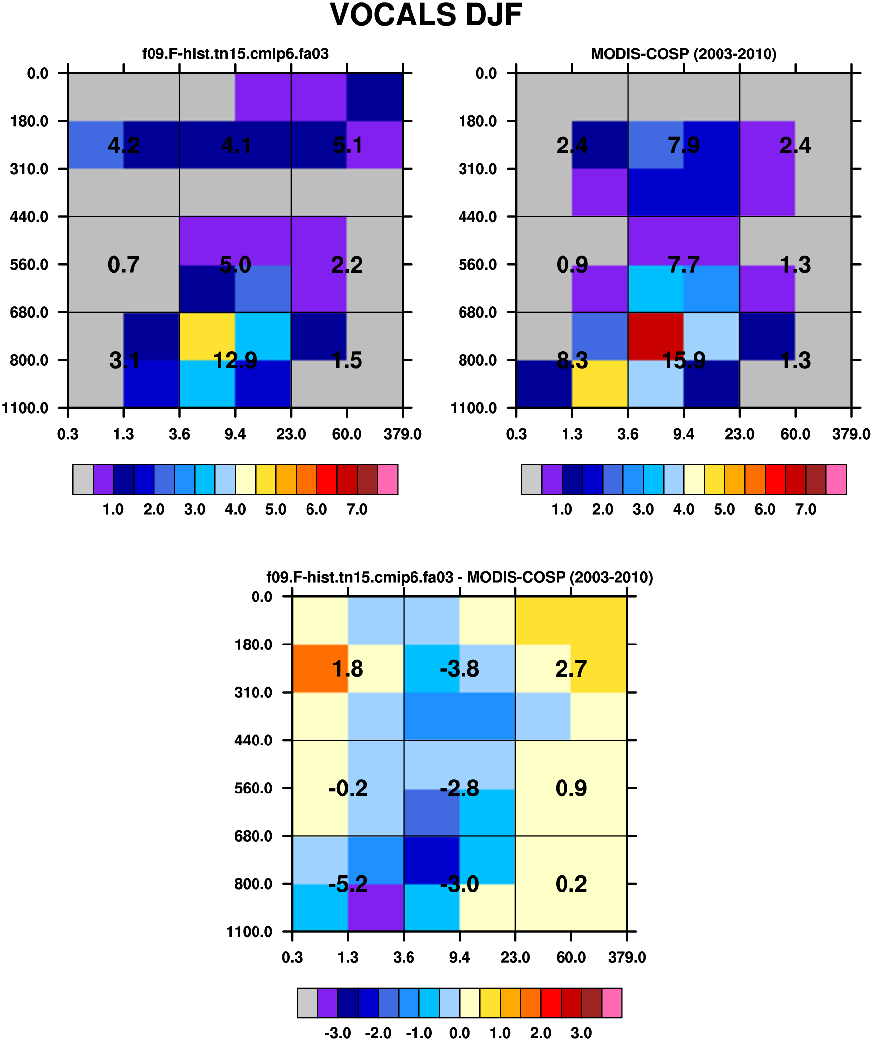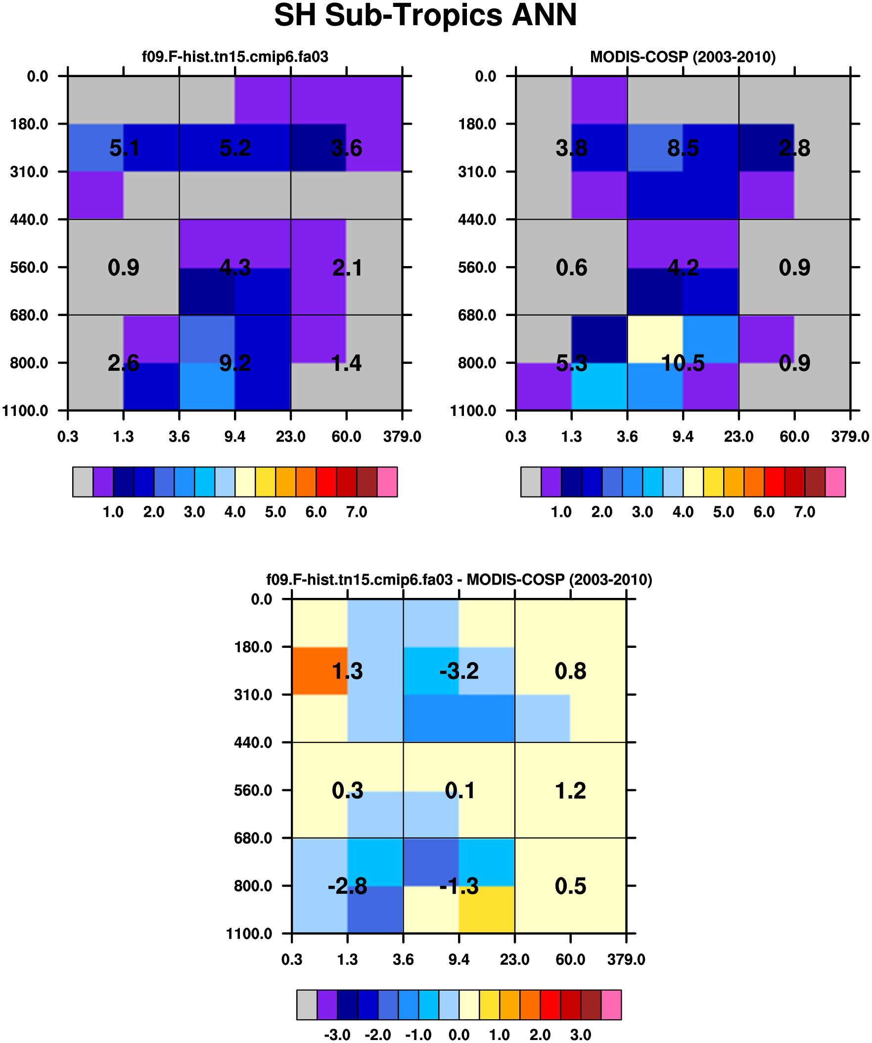 MODIS-COSP (2003-2030) daytime 2D joint histograms of cloud fraction