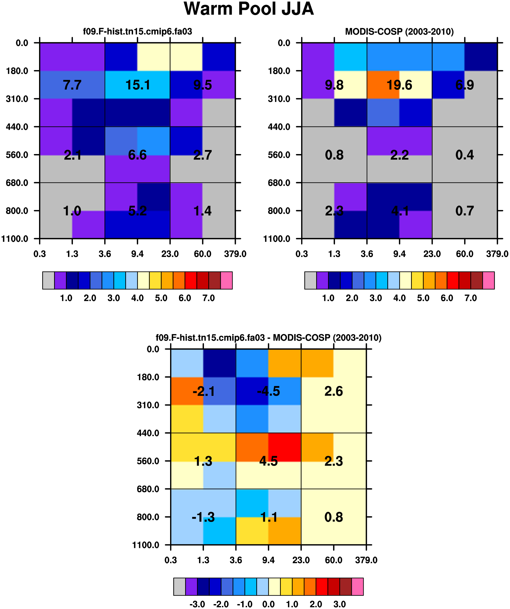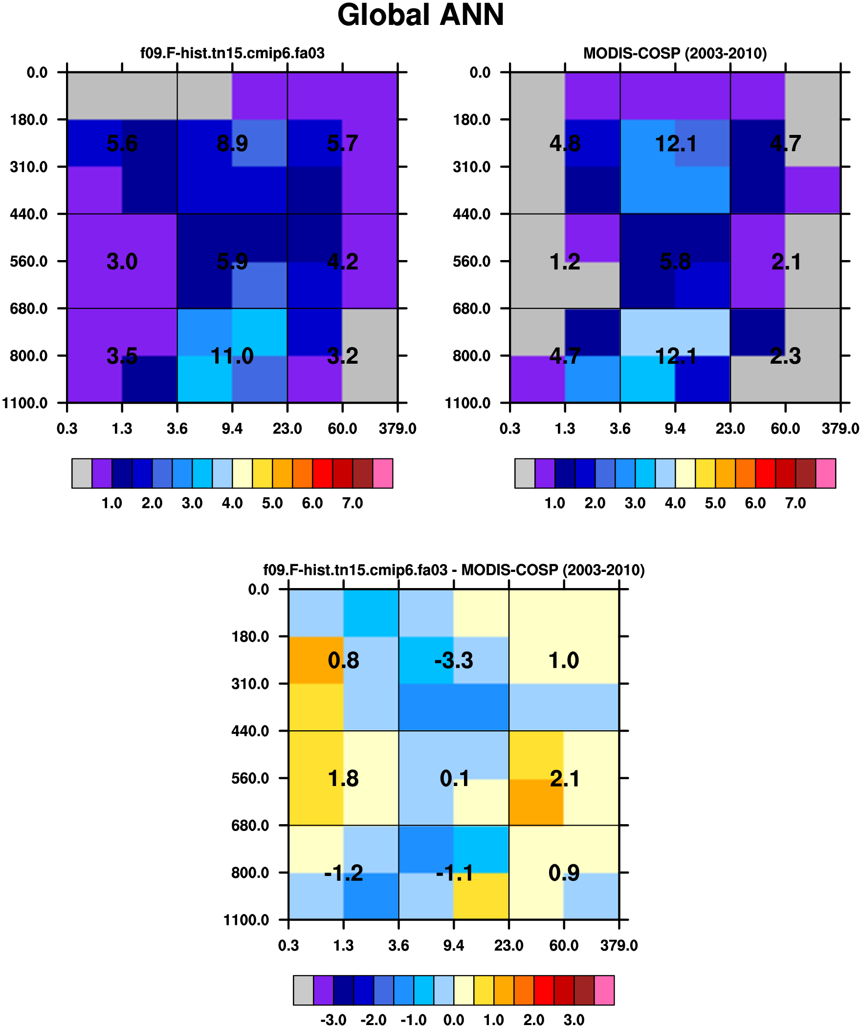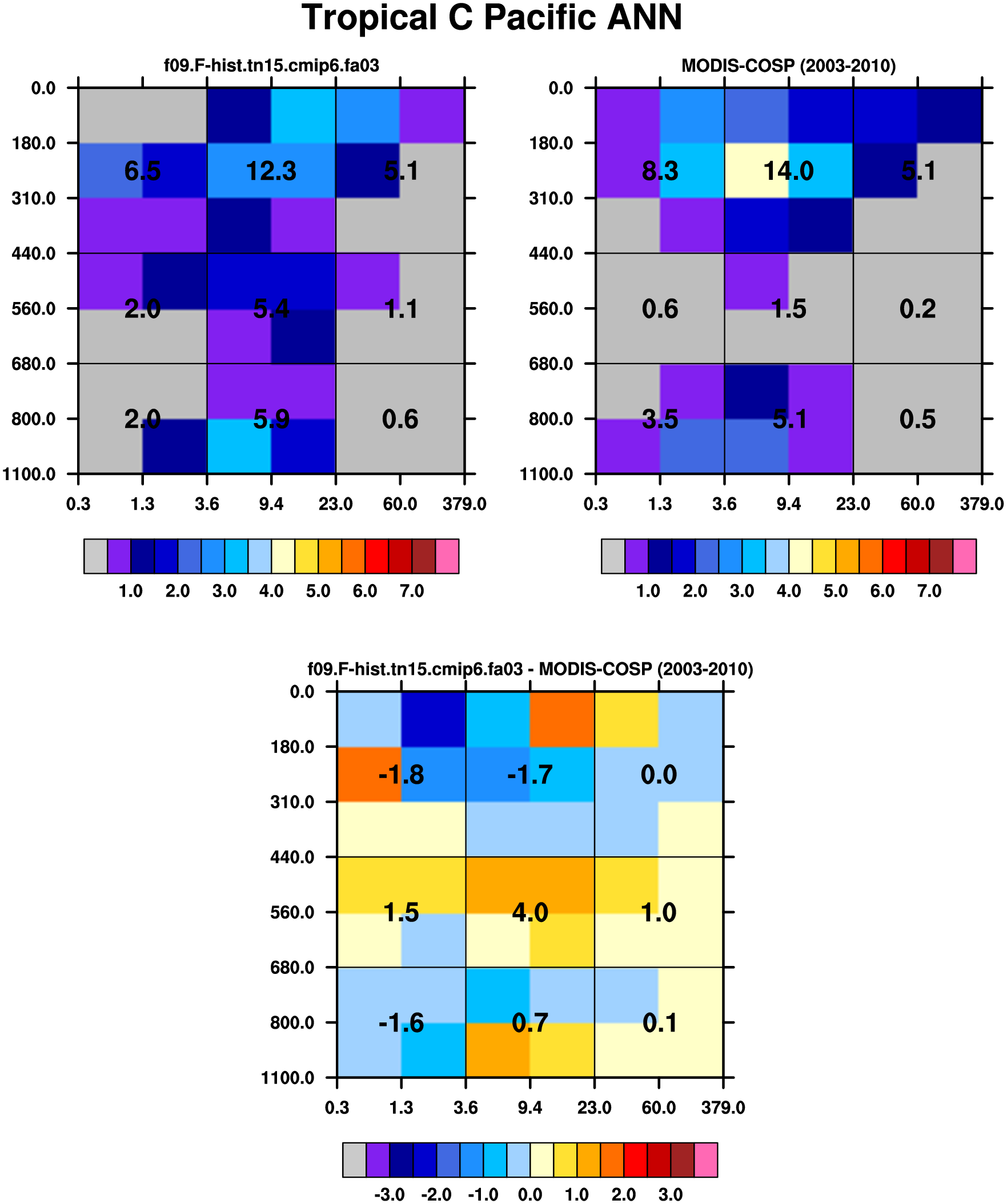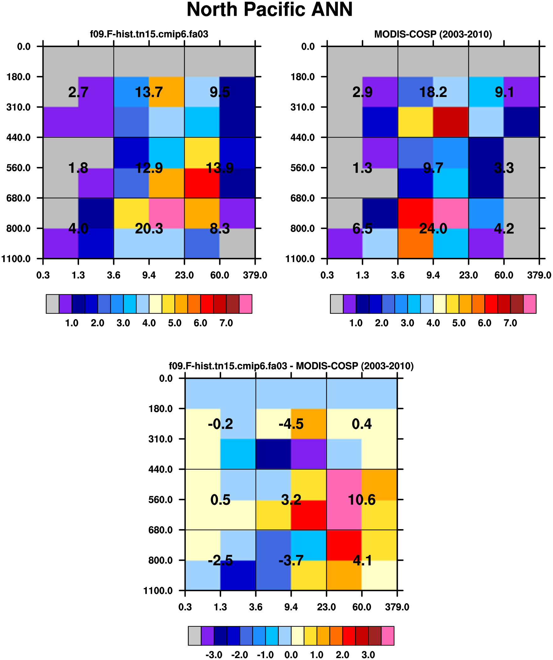 MODIS-COSP (2003-2030) daytime 2D joint histograms of cloud fraction