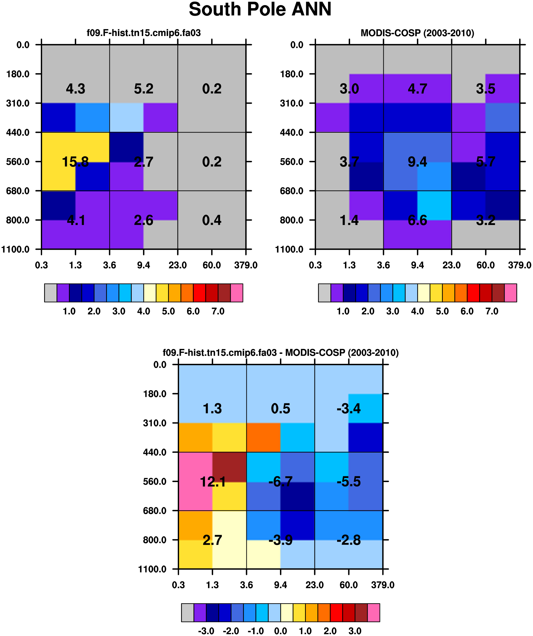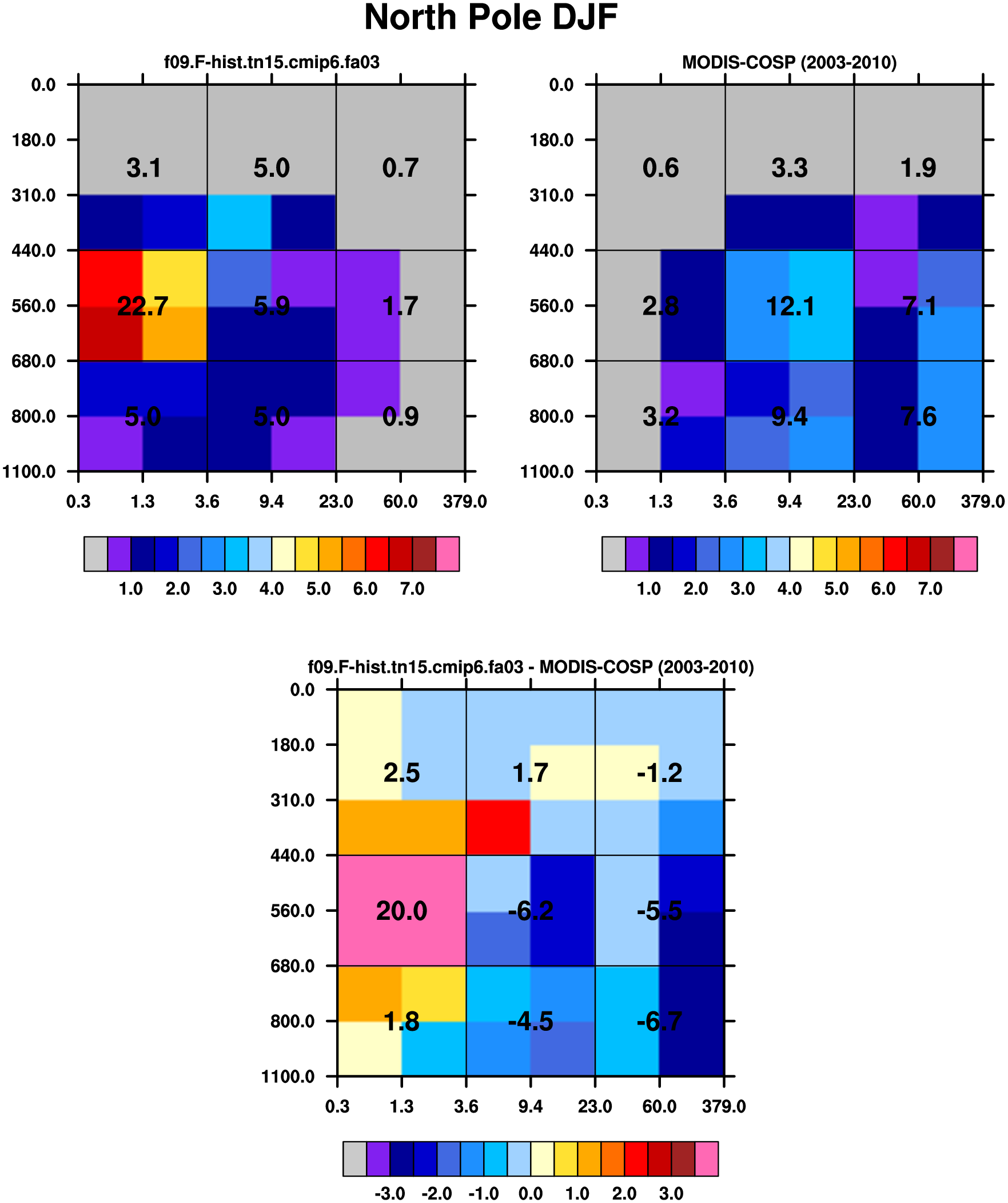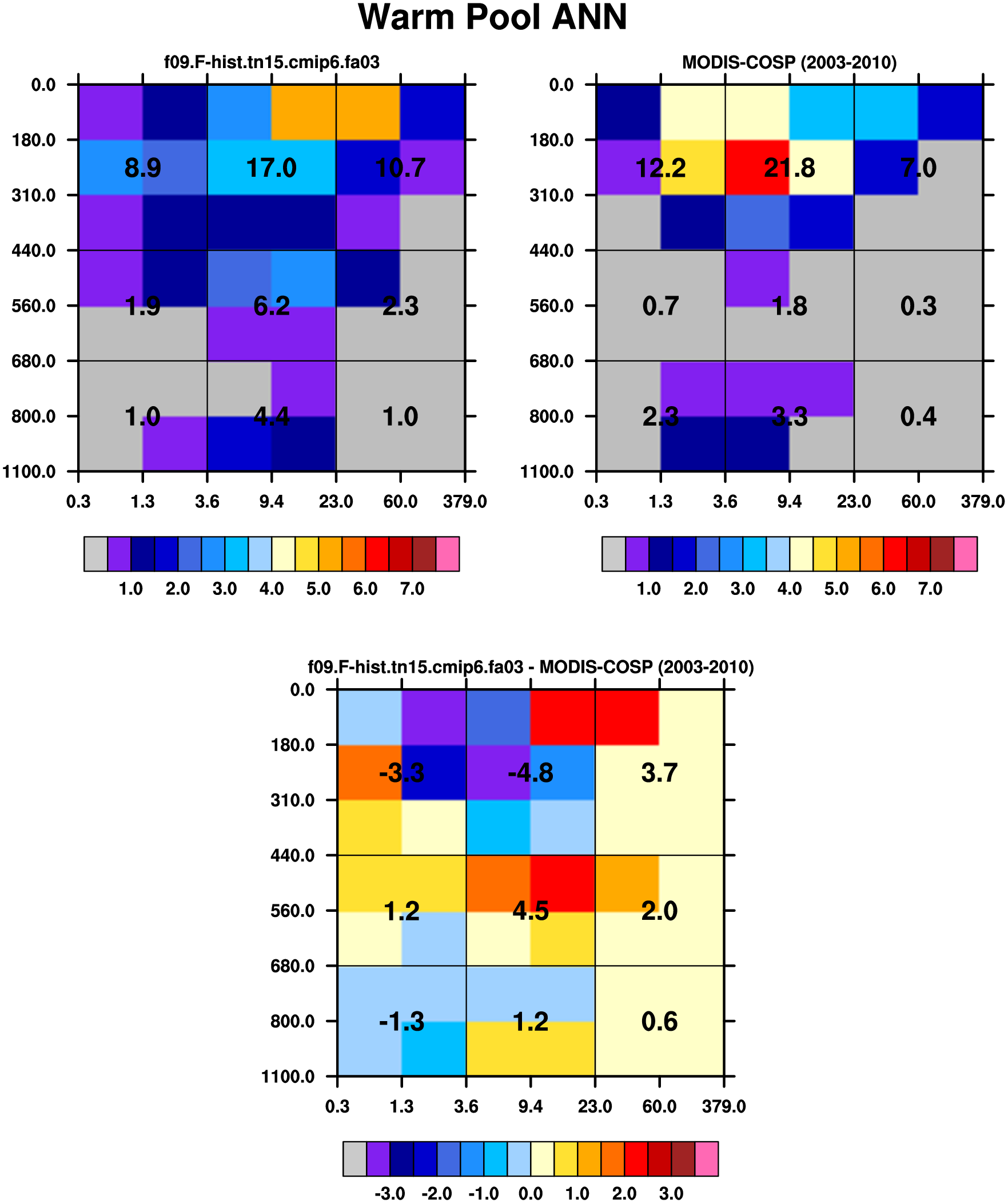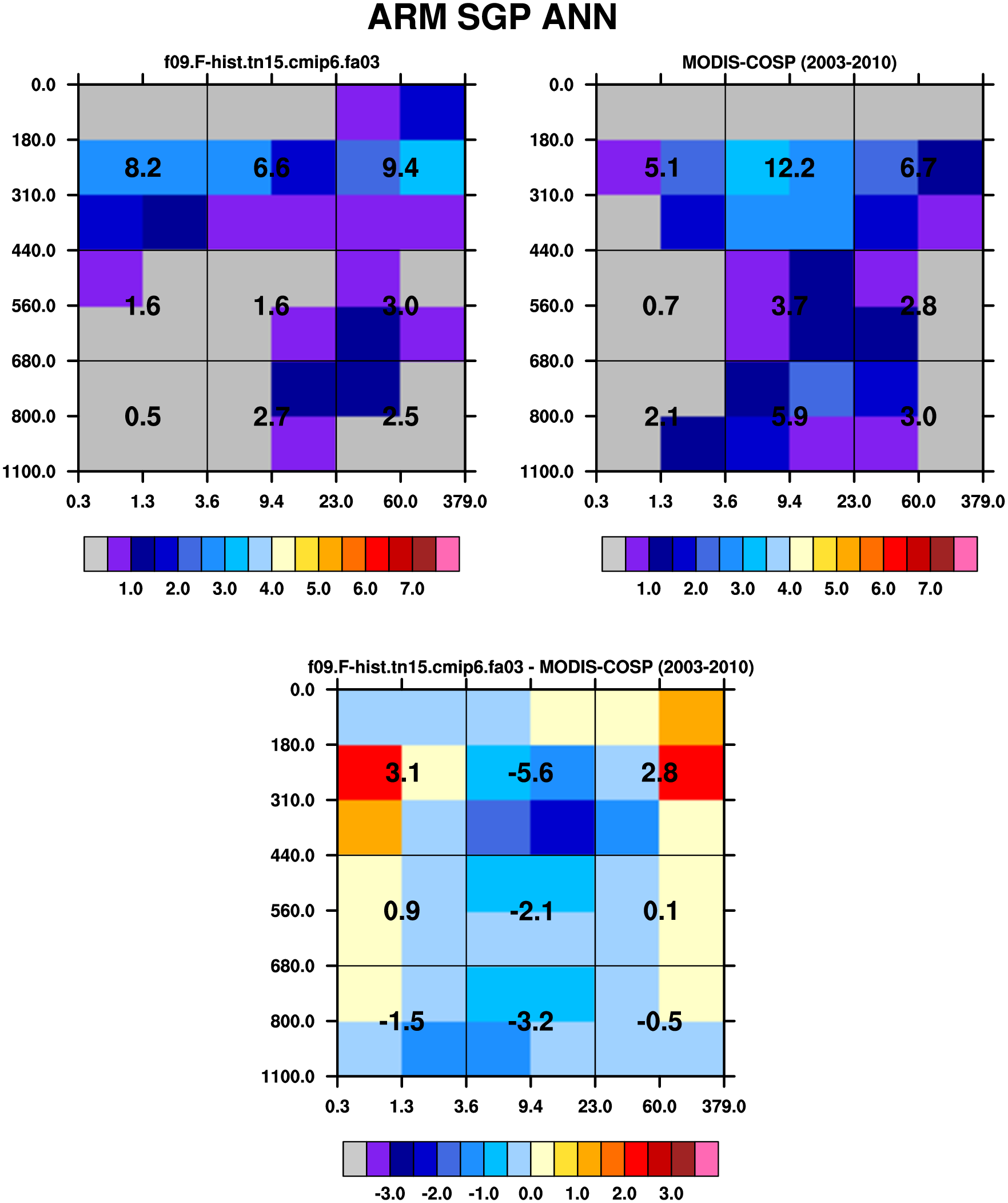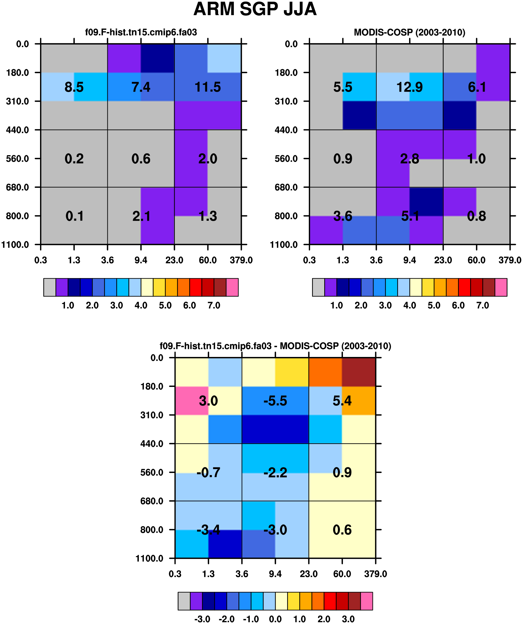 MODIS-COSP (2003-2030) daytime 2D joint histograms of cloud fraction