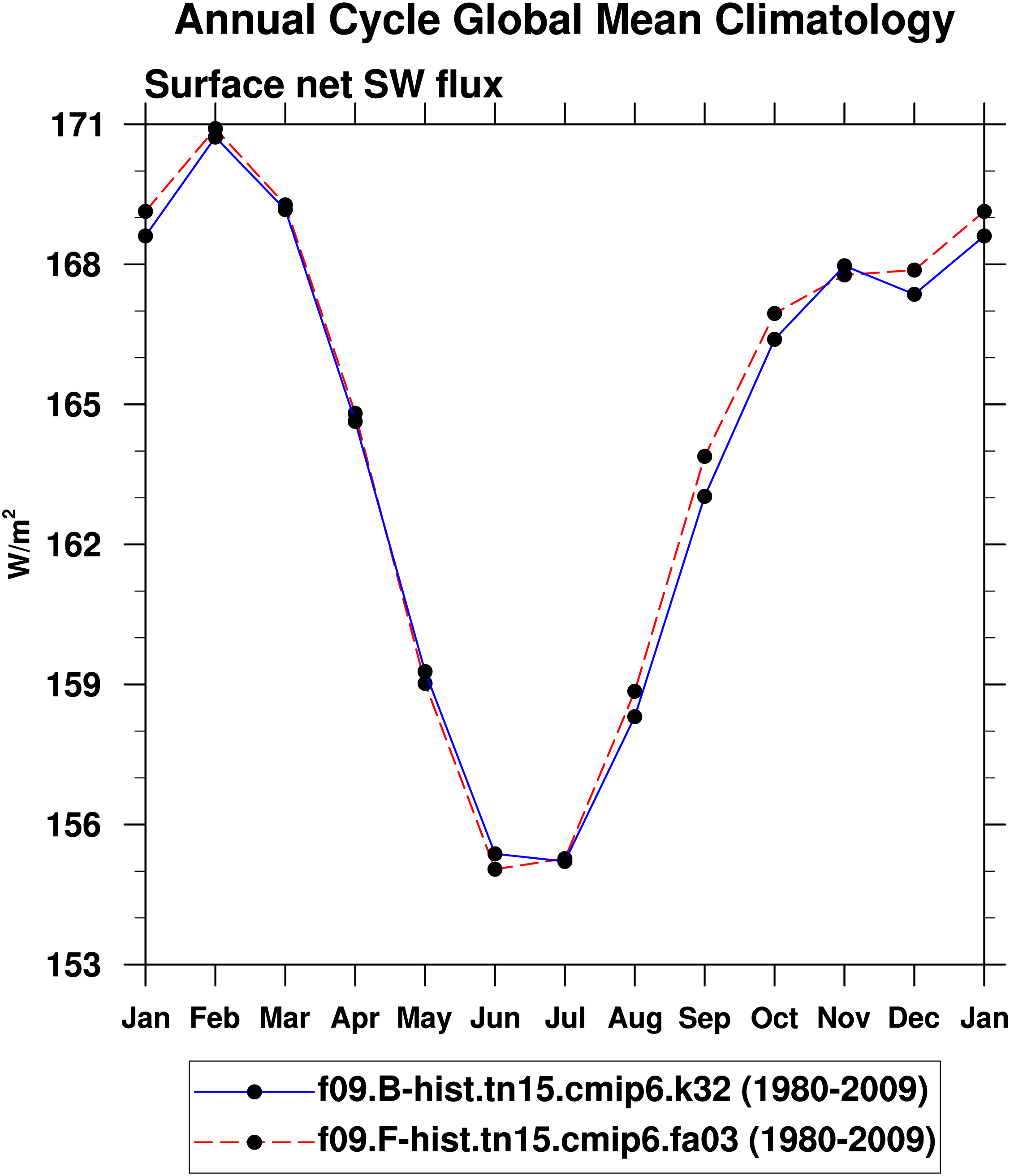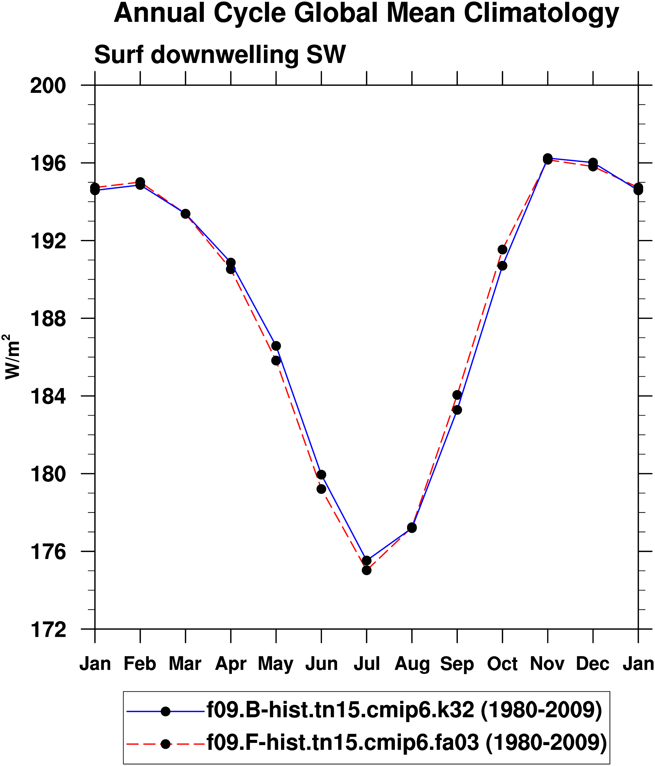 DIAG Set 10 - Annual cycle line plots of global means