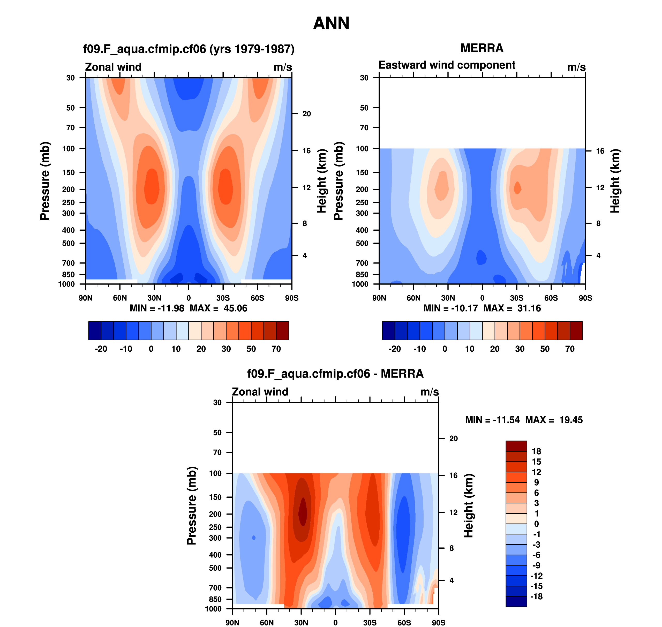 DIAG Set 4 - Vertical contour plots of DJF, JJA and ANN zonal means