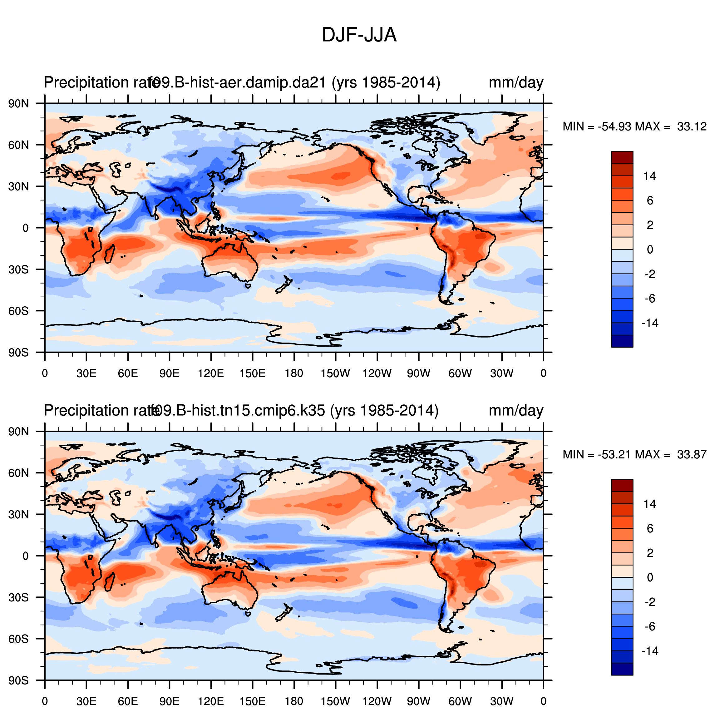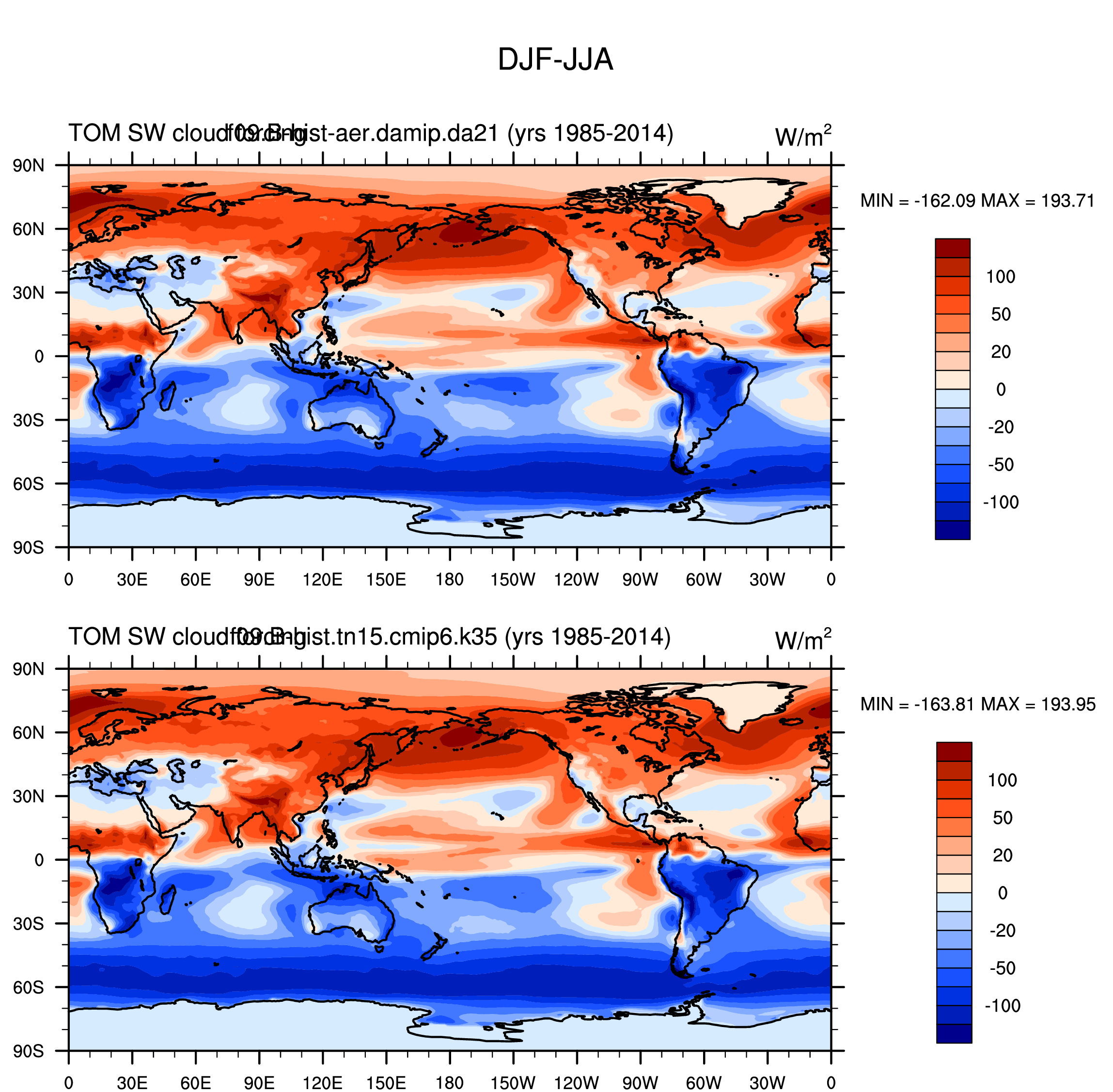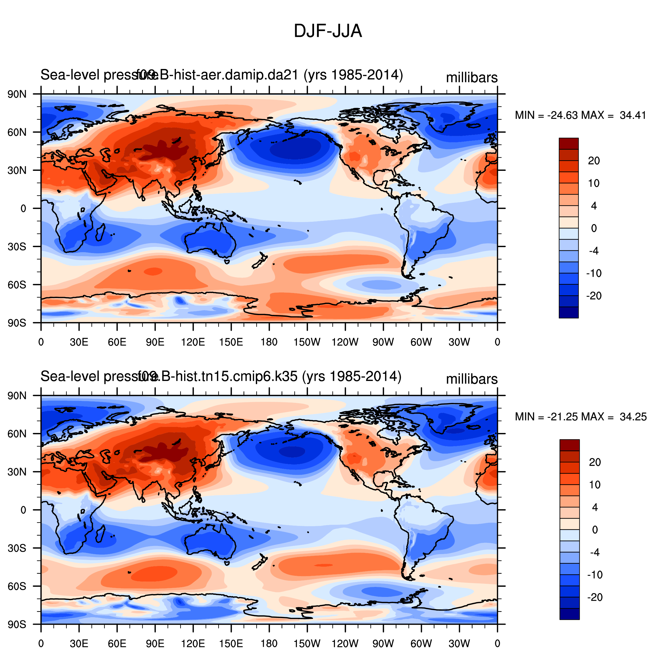 DIAG Set 9 - Horizontal contour plots of DJF-JJA differences