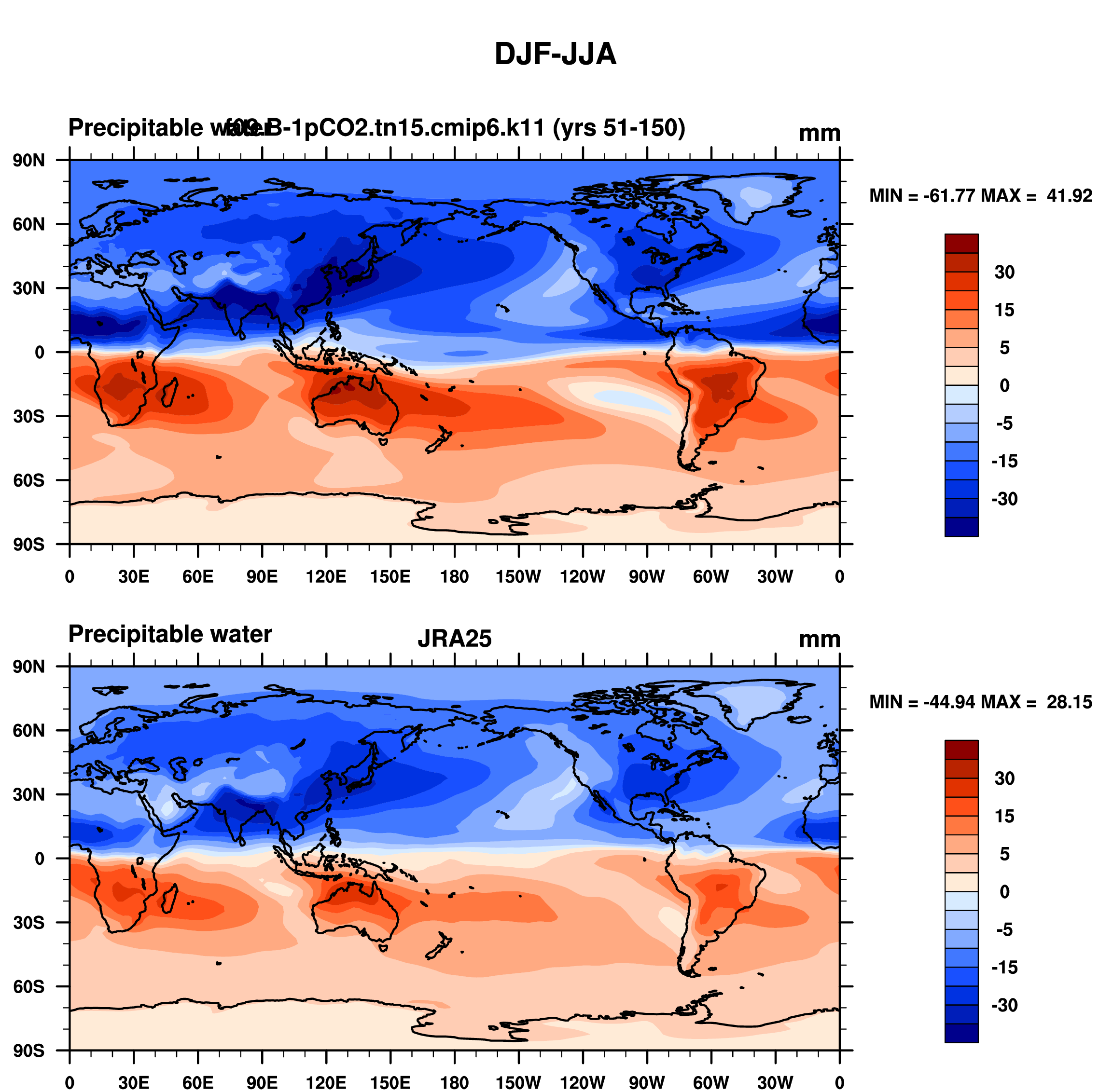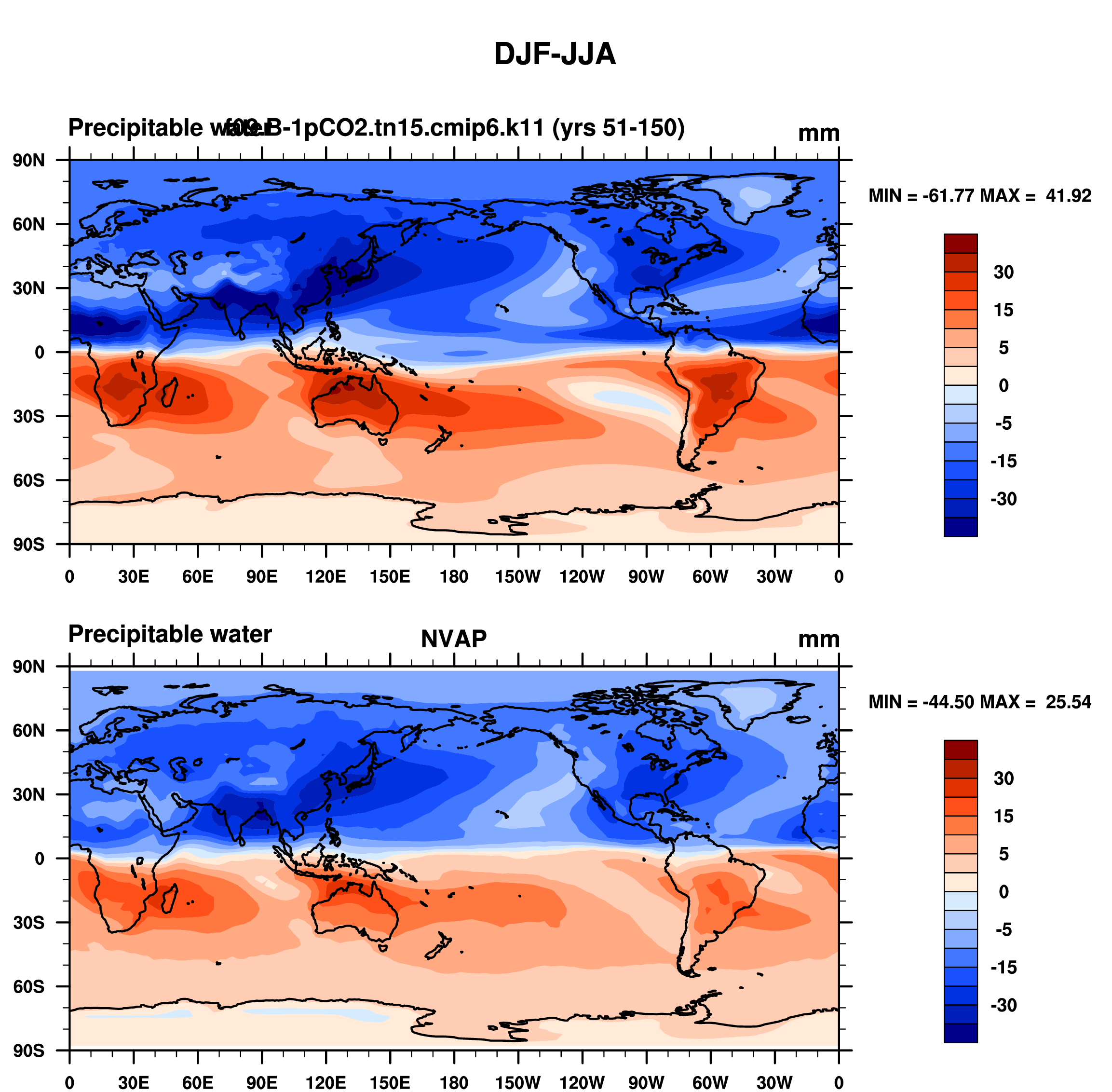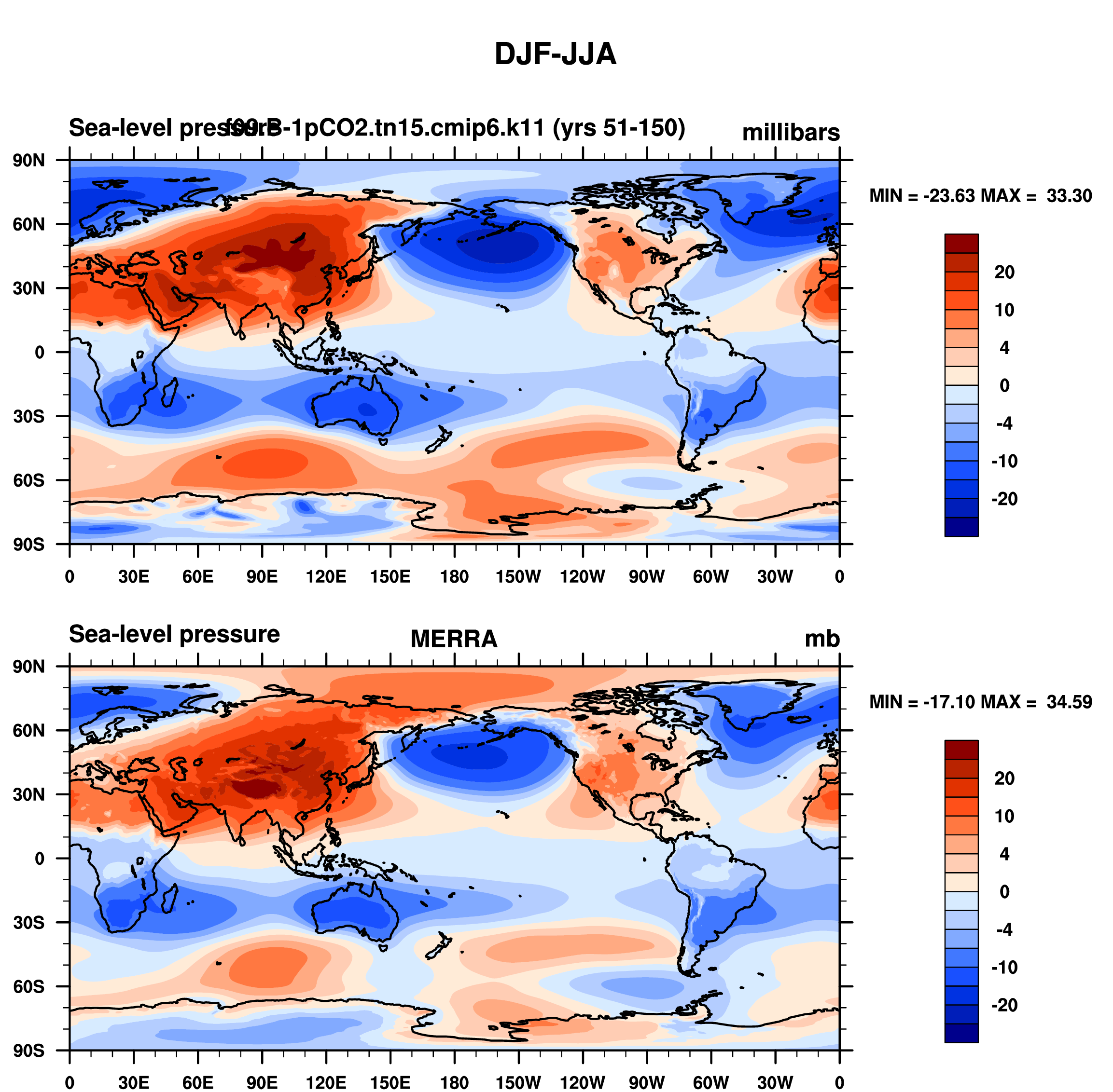 f09.B-1pCO2.tn15.cmip6.k11 DIAG Set 9 - Horizontal contour plots of DJF-JJA differences