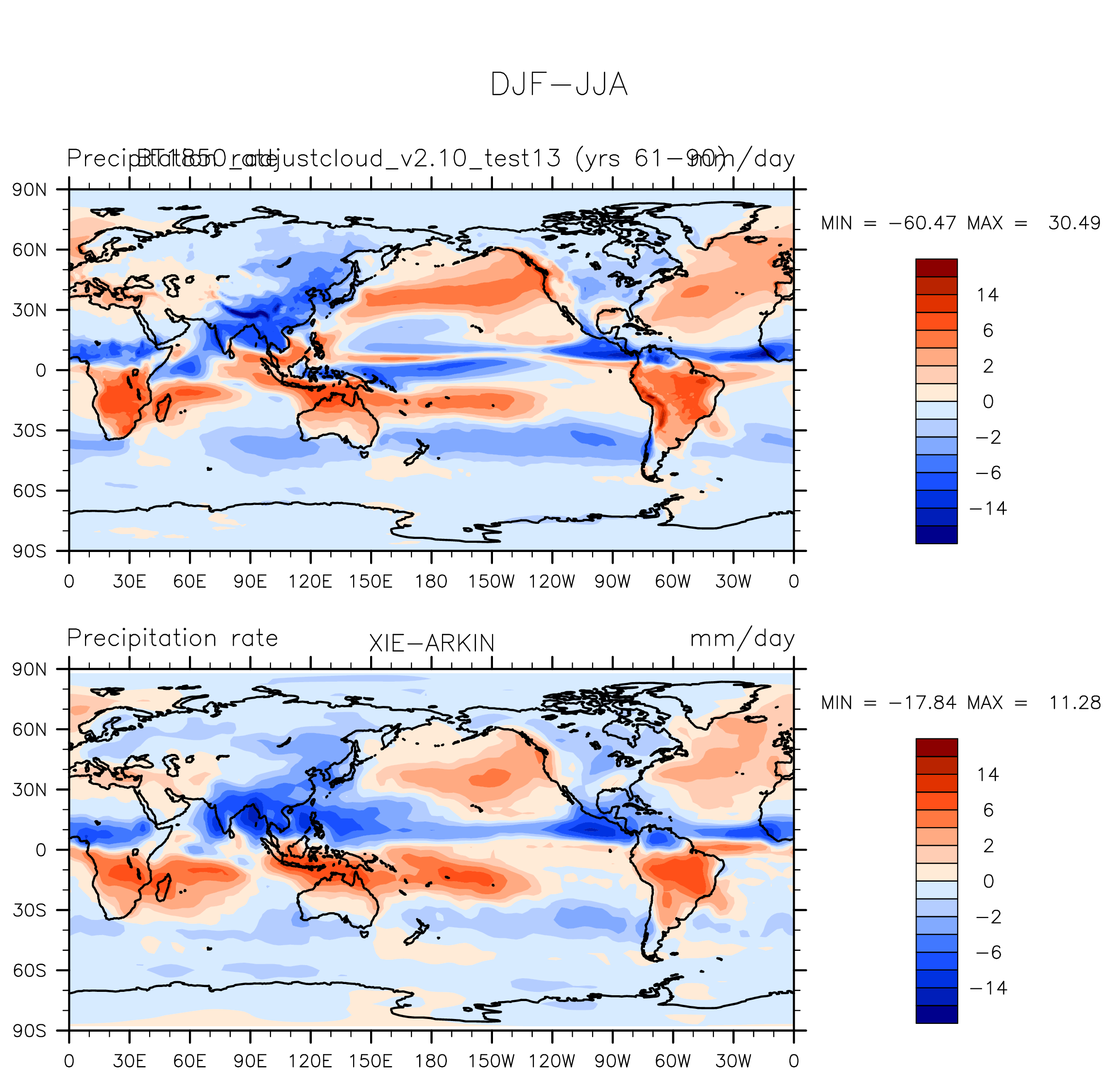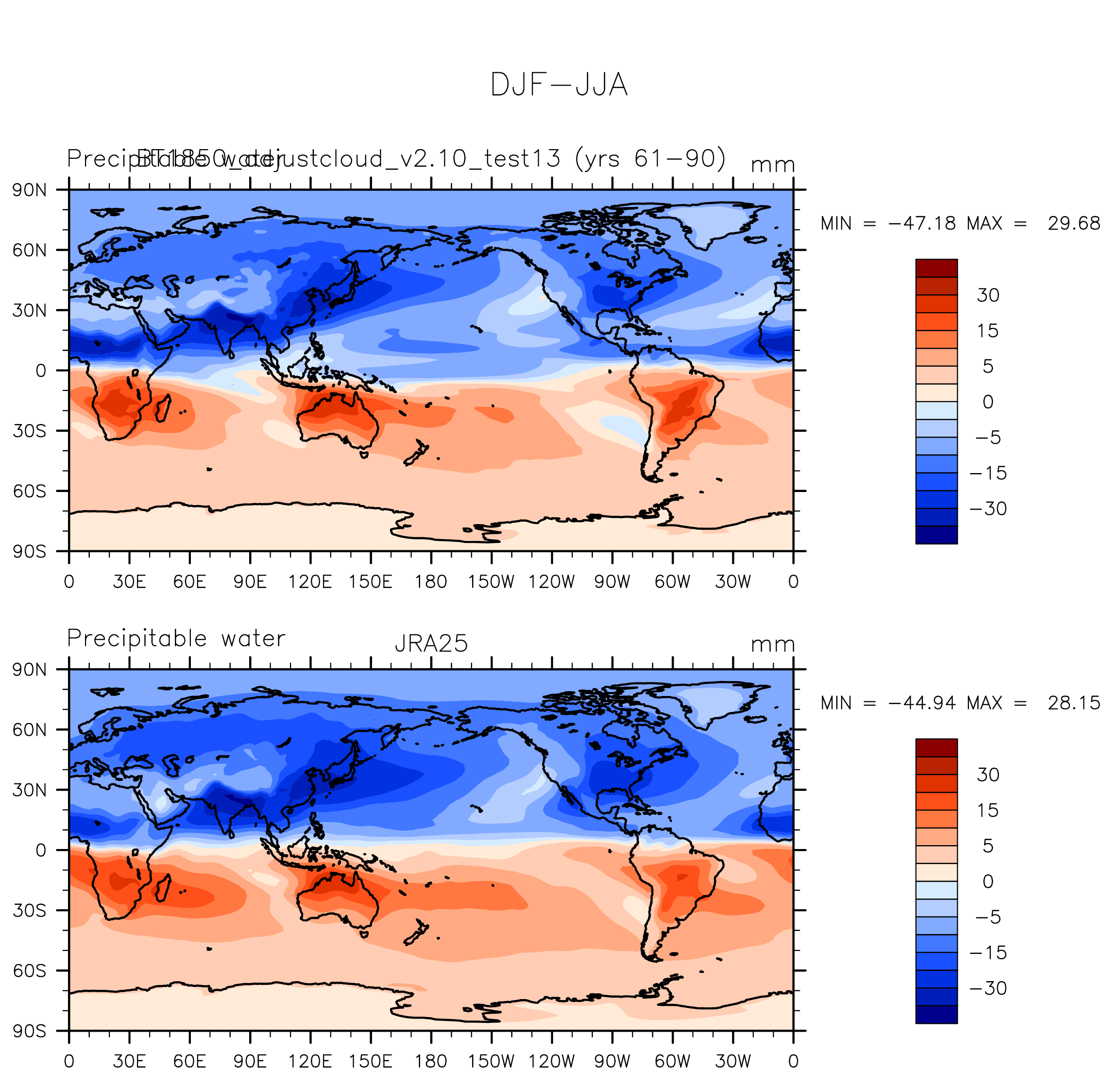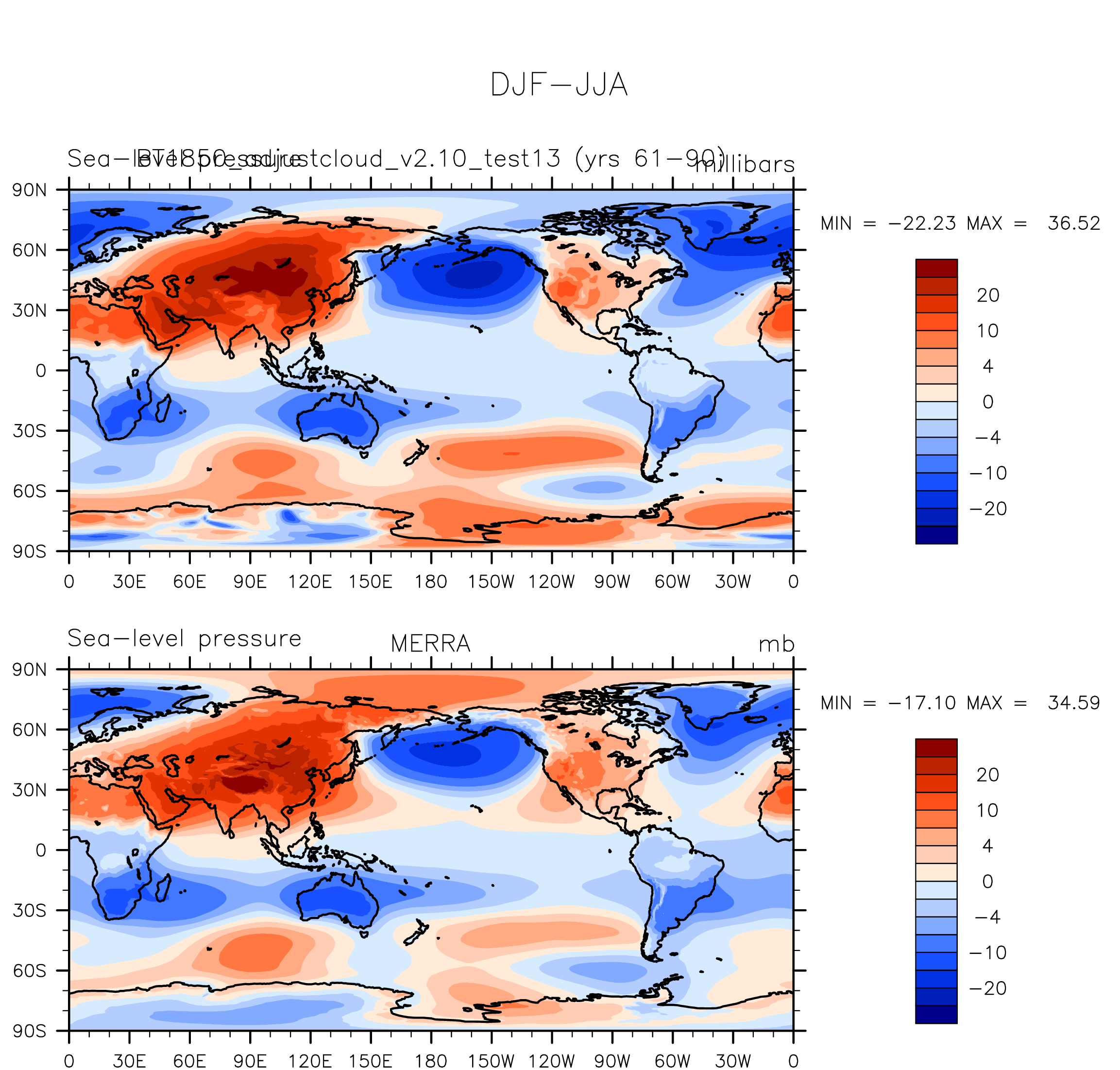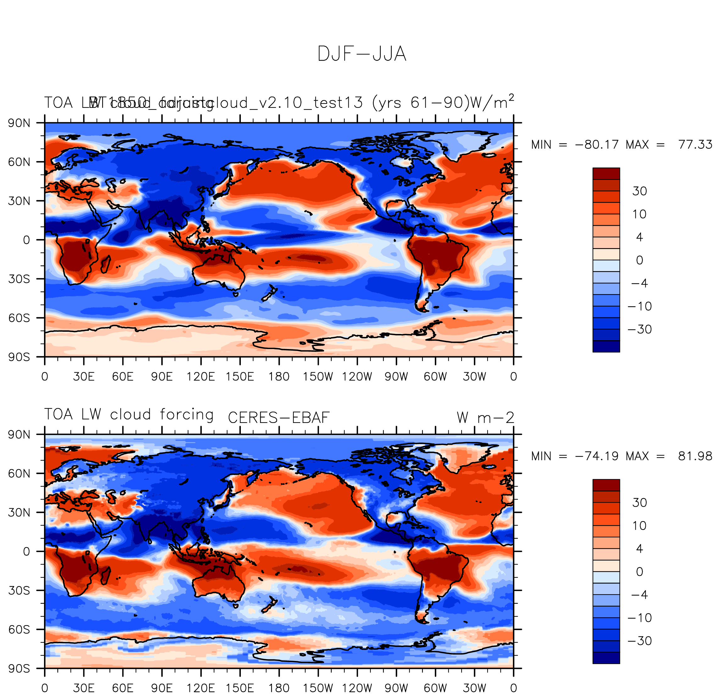 BT1850_adjustcloud_v2.10_test13 DIAG Set 9 - Horizontal contour plots of DJF-JJA differences