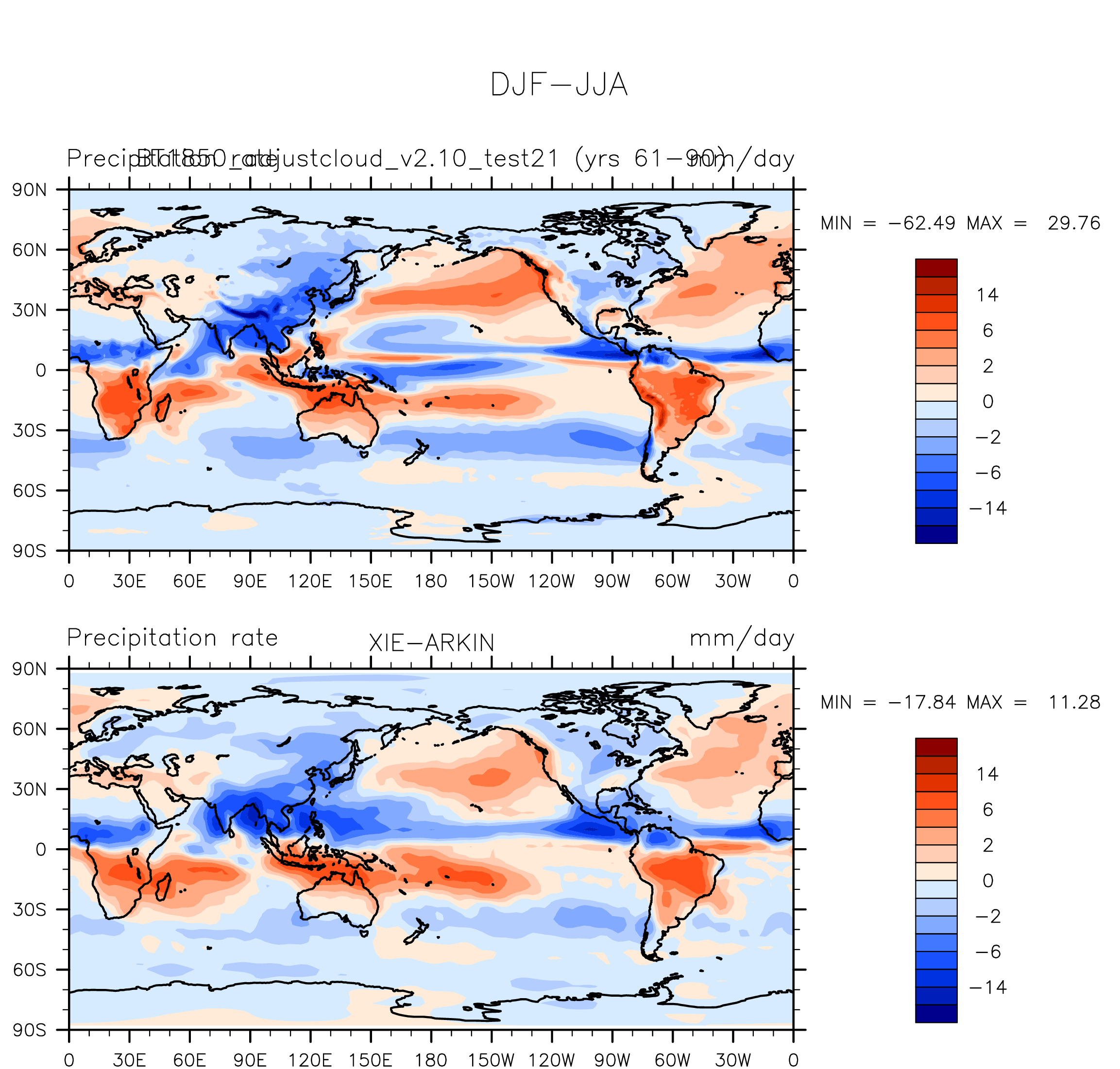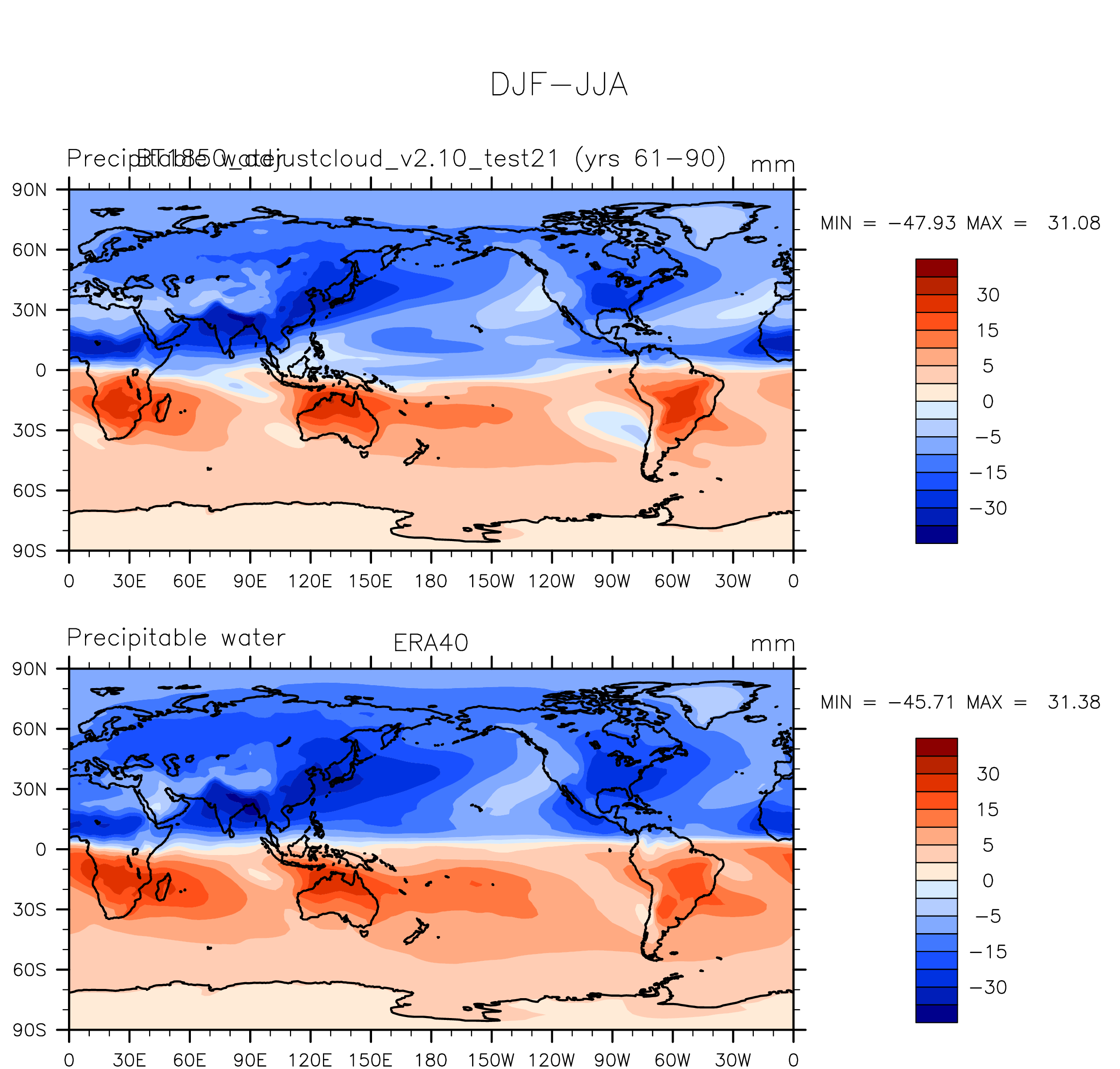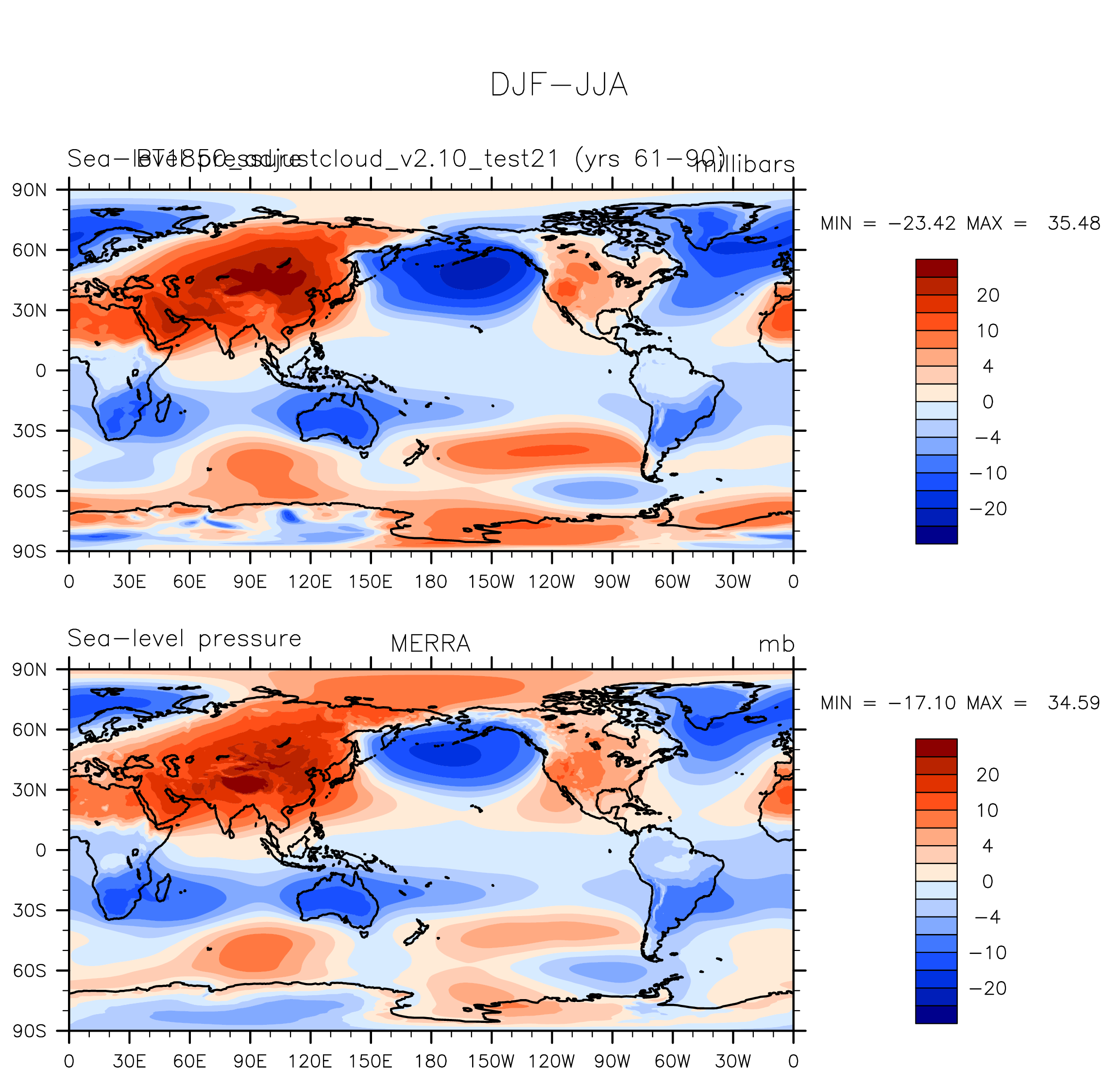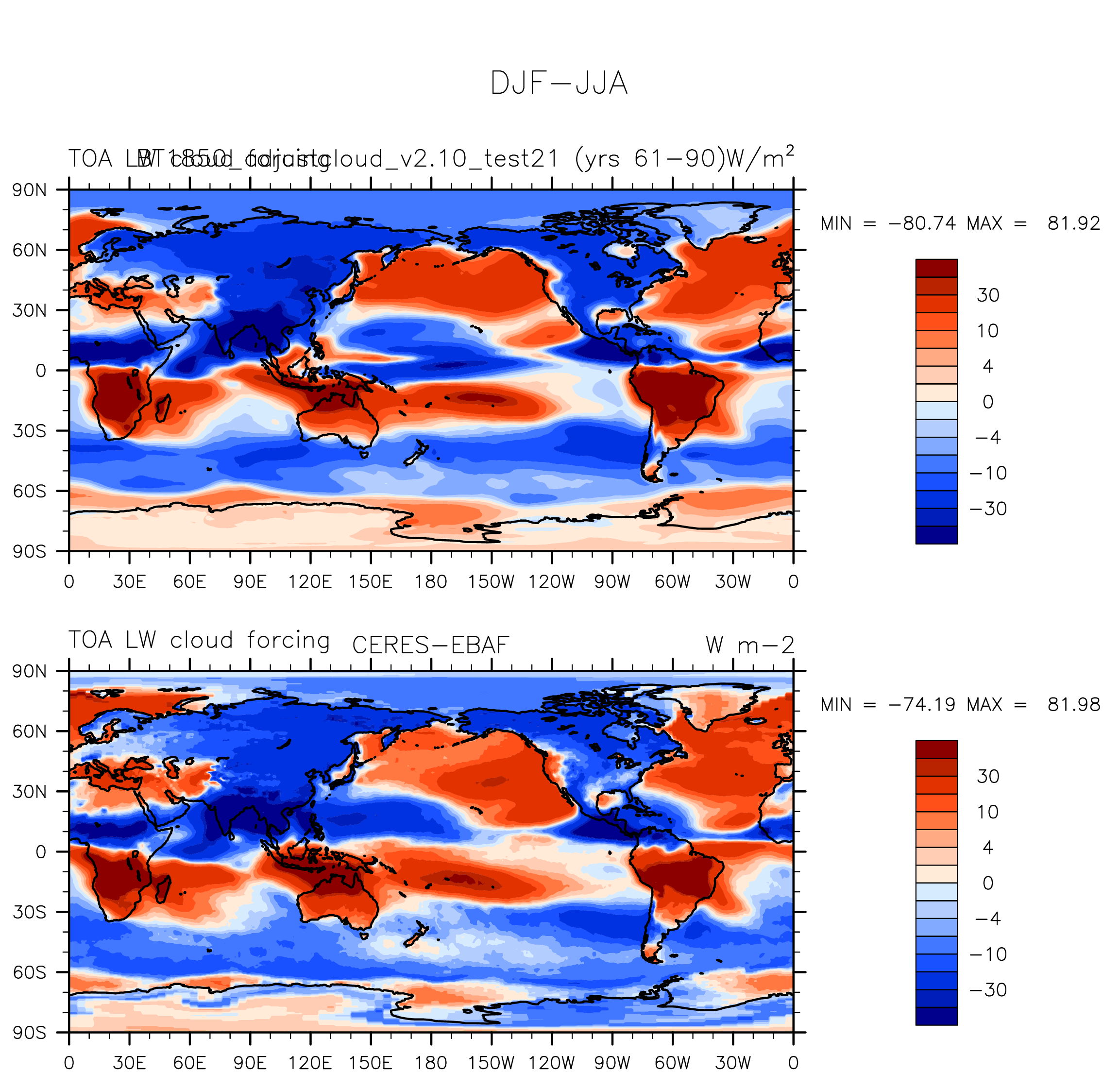 BT1850_adjustcloud_v2.10_test21 DIAG Set 9 - Horizontal contour plots of DJF-JJA differences