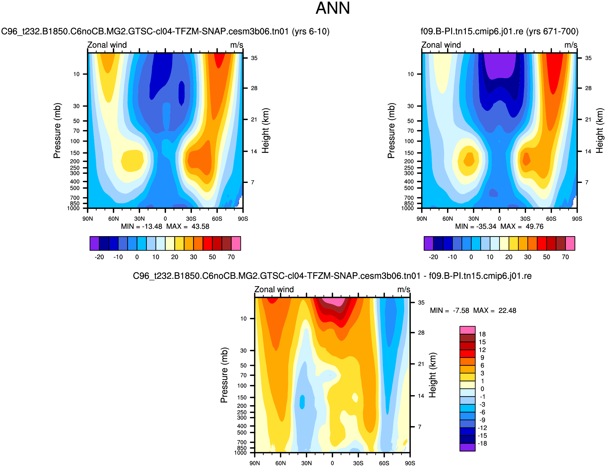 DIAG WACCM Set 1 - Vertical contour plots of DJF, MAM, JJA, SON and ANN zonal means