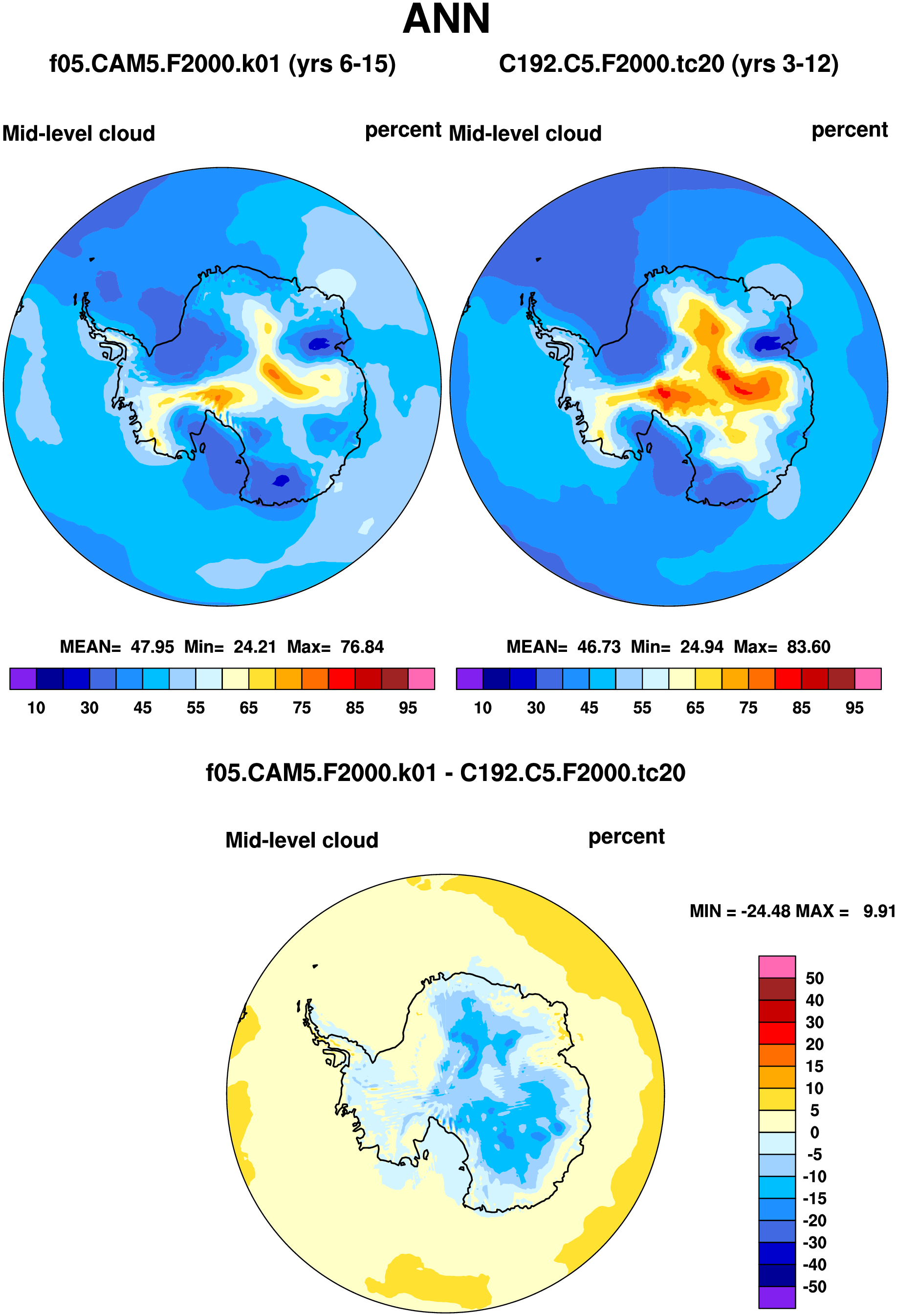 DIAG Set 7 - Polar contour plots of DJF, MAM, JJA, SON and ANN means