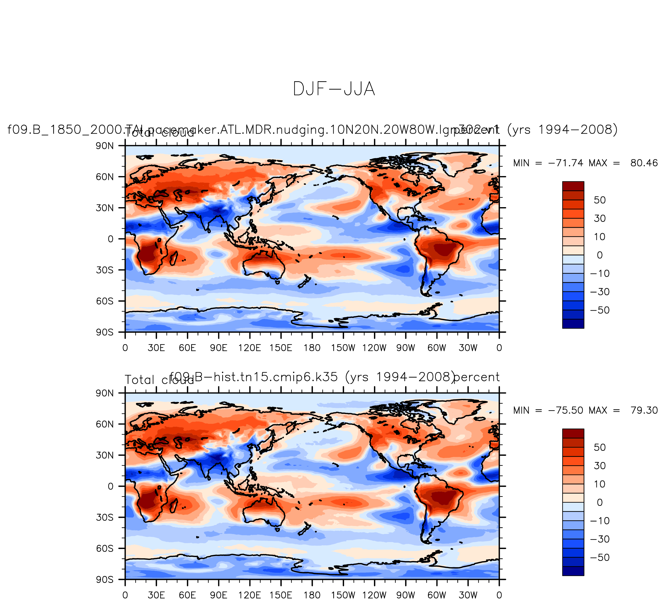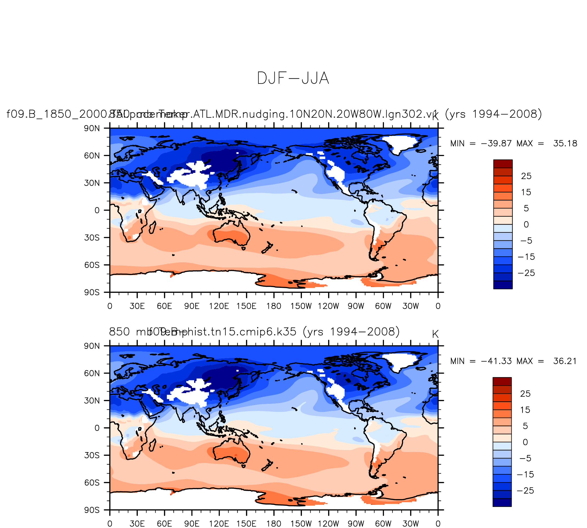 DIAG Set 9 - Horizontal contour plots of DJF-JJA differences