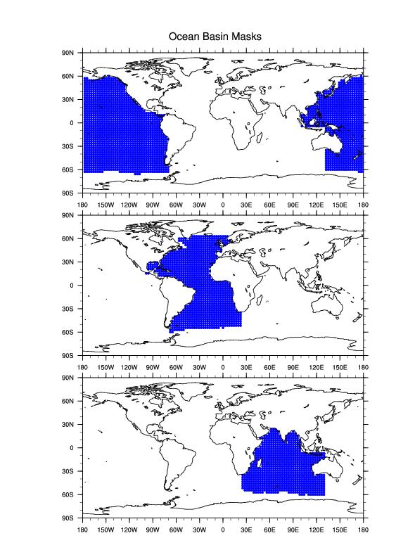 A plot of the ocean basins used in the calculations.